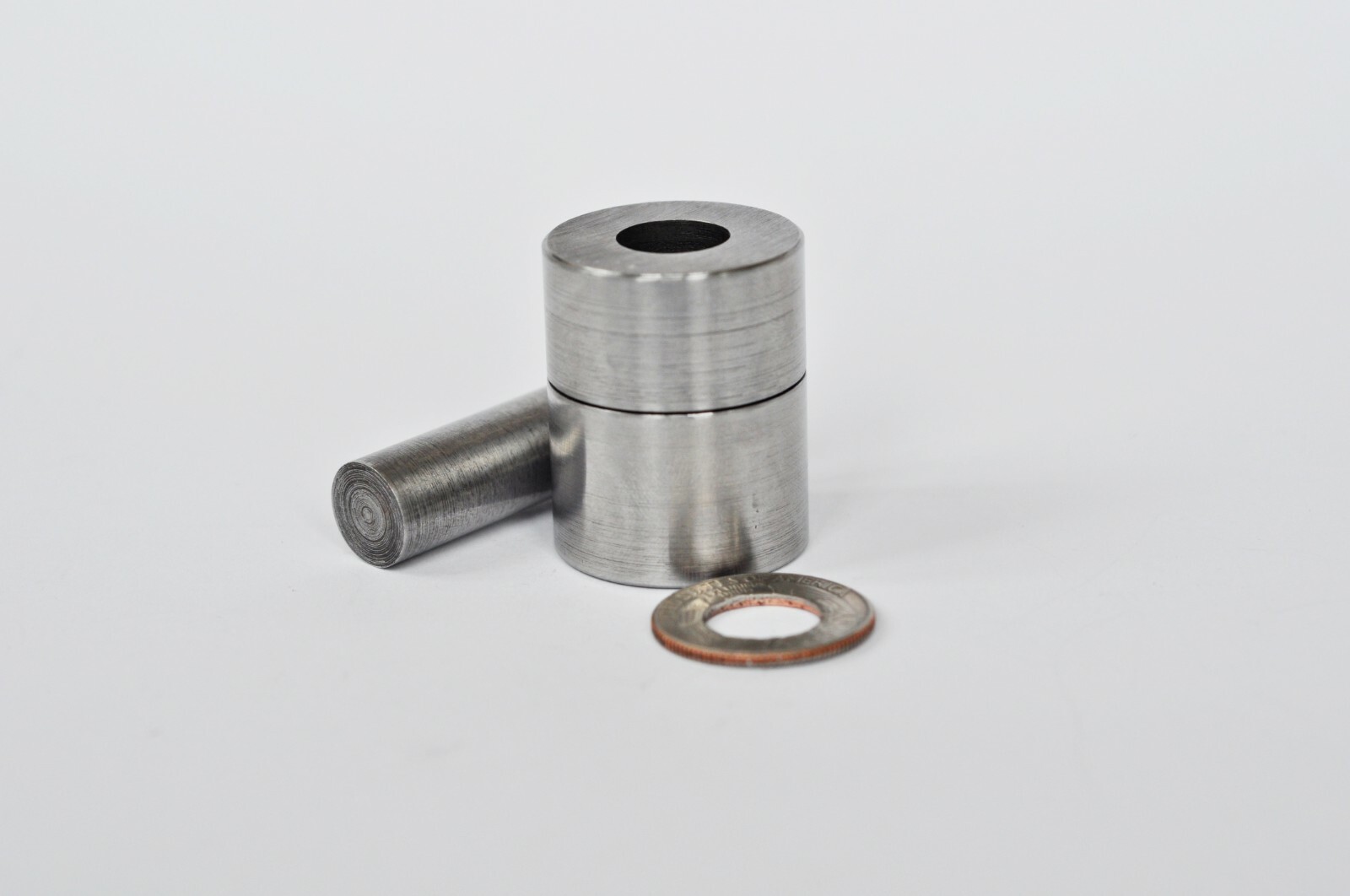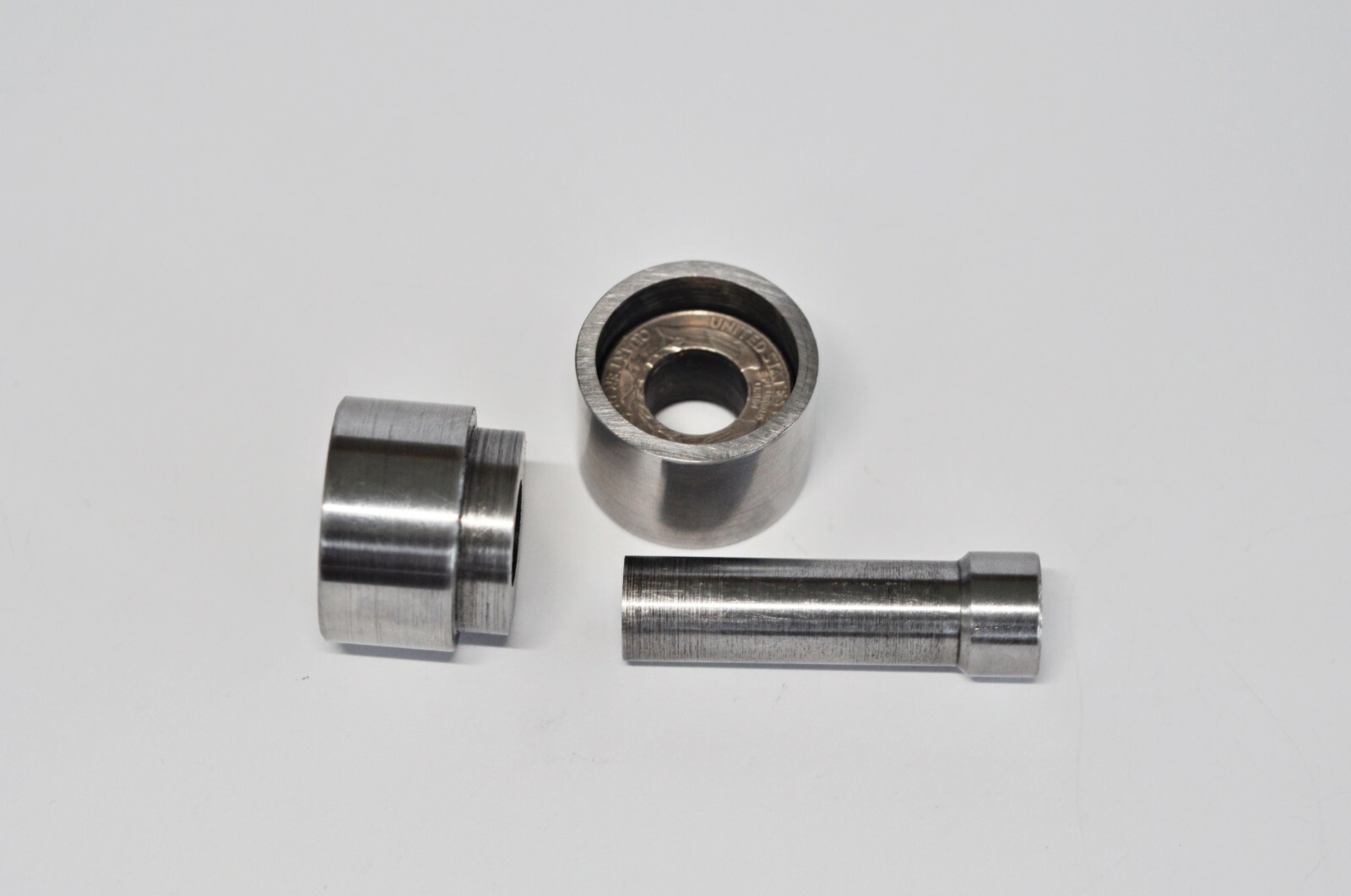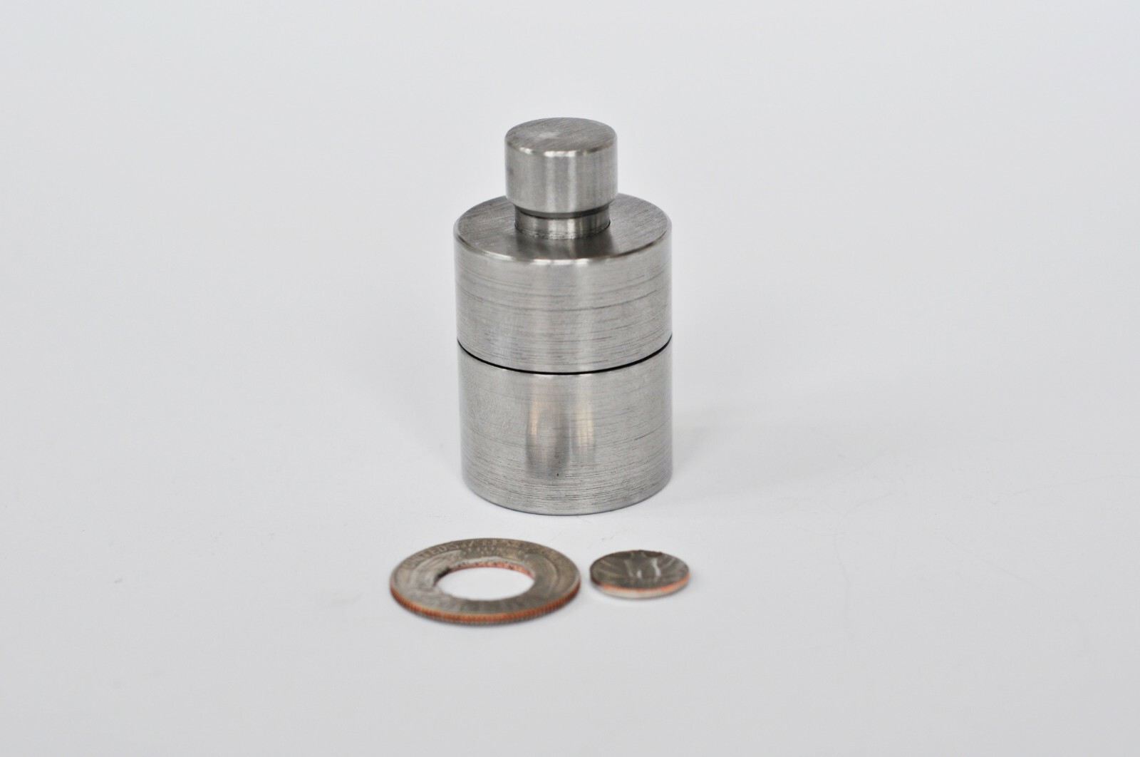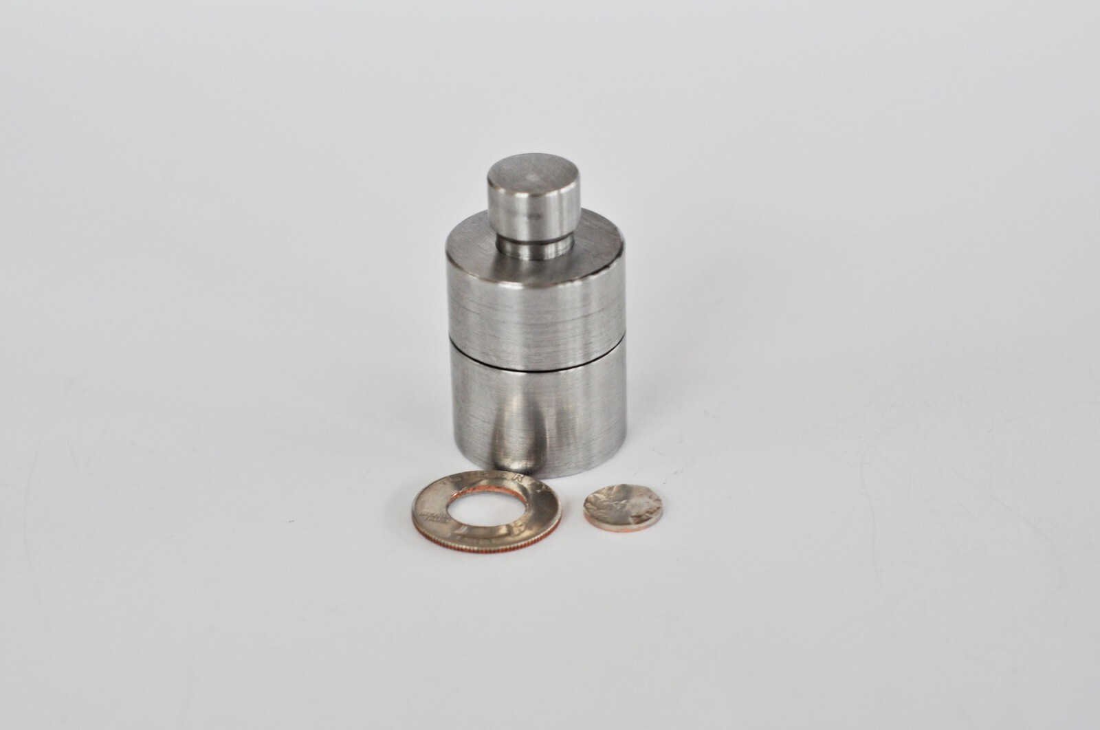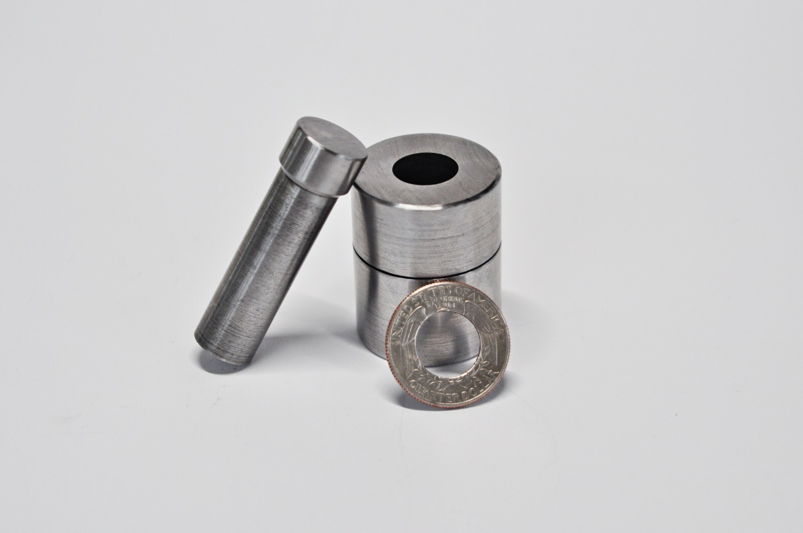 Tool for making hole in coin (US Quarter Dollar).