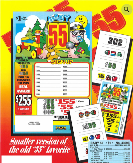 Pull Tab Ticket - Hard Cards - Game -Holder - Baby 55 - 832 ct