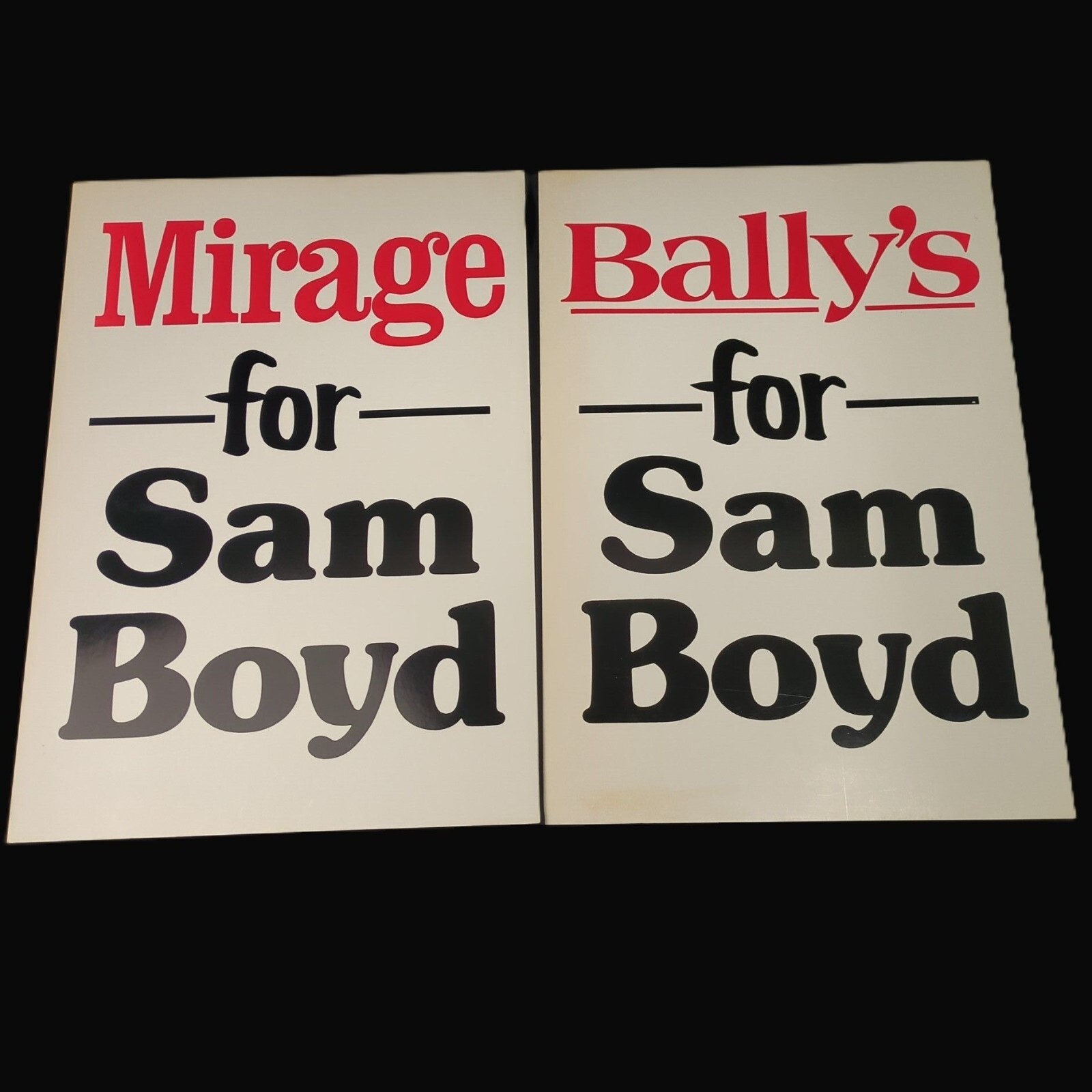 IMPERFECTIONS: Some corners and edges are bent. Various amounts of staining throughout. There's an overall yellowing mainly on the outer edges of the signs.