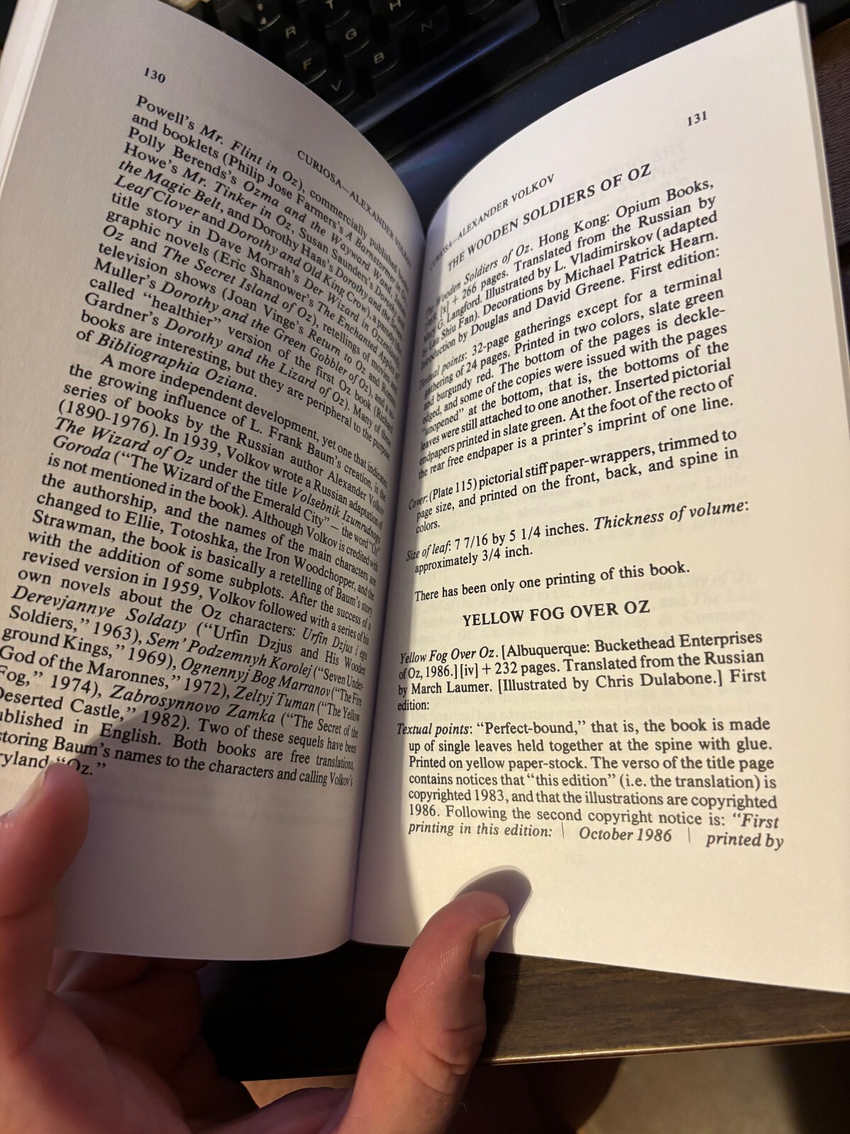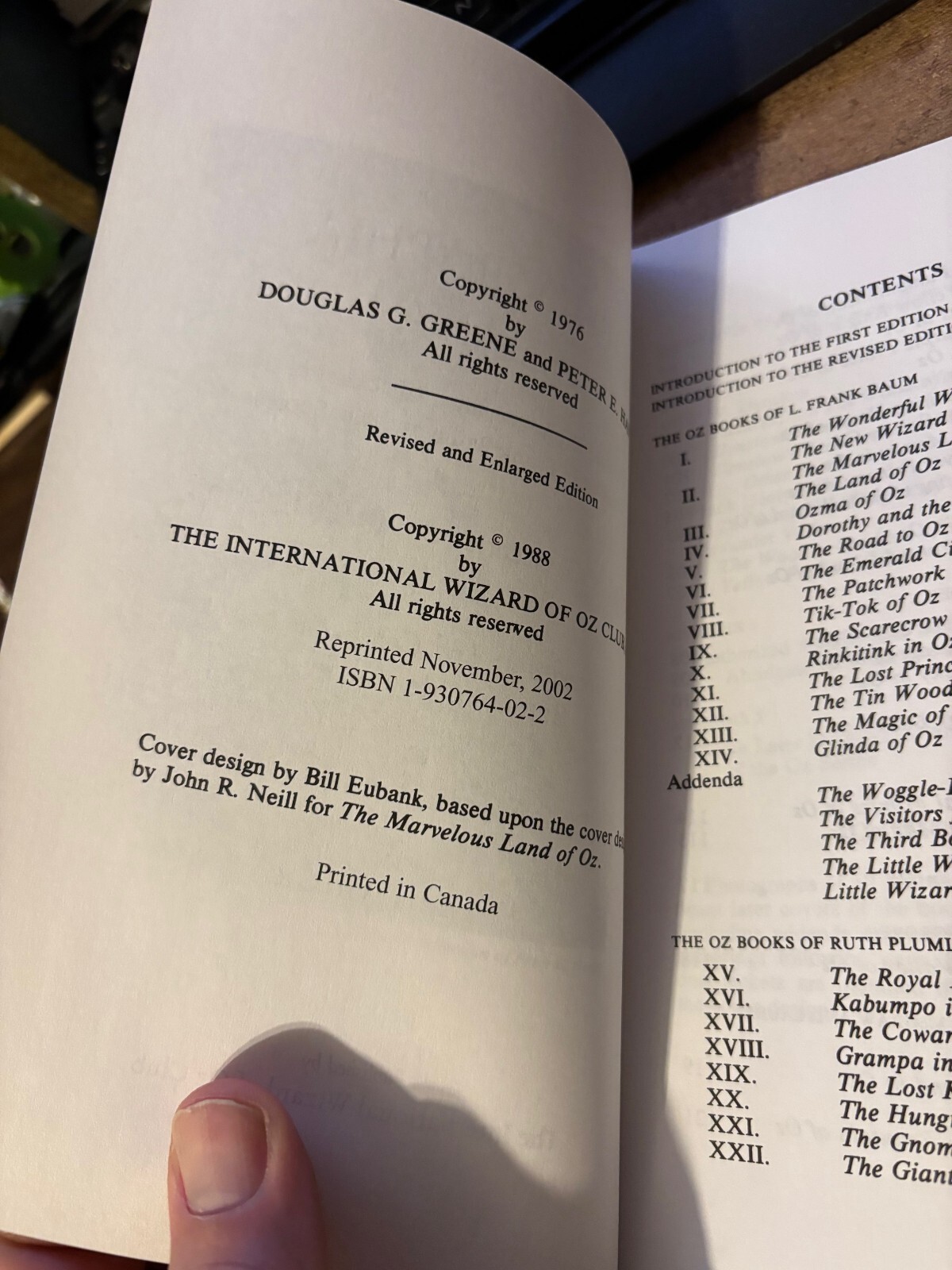 Here we have a brand new copy of BIBLIOGRAPHIA OZIANA - Revised and Expanded, by Peter Hanff, Douglas G. Greene, Dick Martin, James E. Haff, and David Greene. Published in 2002 by The International Wizard of Oz Club. This book is brand new, unread. It's a valuable tool for Oz collectors and book dealers to discern the intricacies of the Oz books by L. Frank Baum, Ruth Plumly Thompson, John R. Neill, and others, as published by Reilly & Britton and Reilly & Lee.