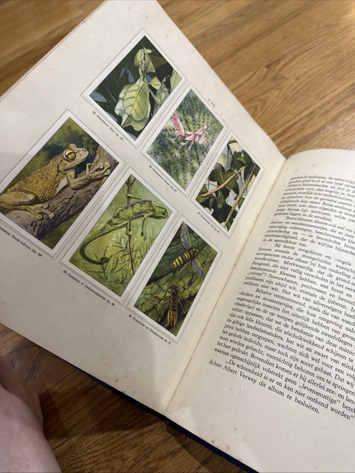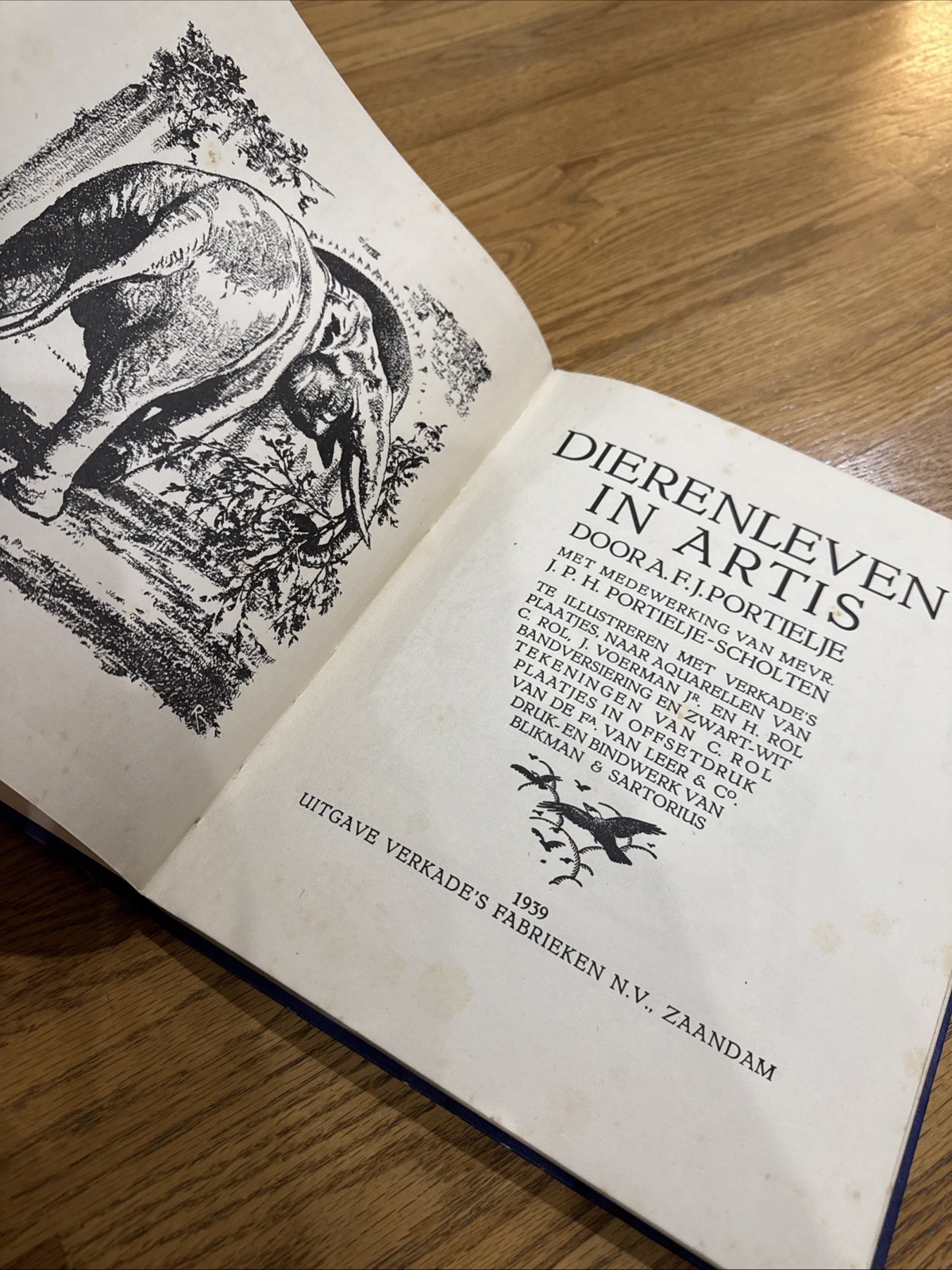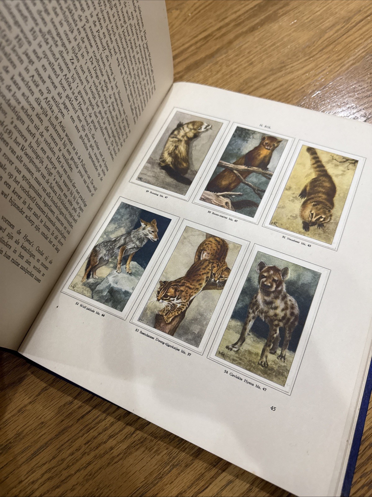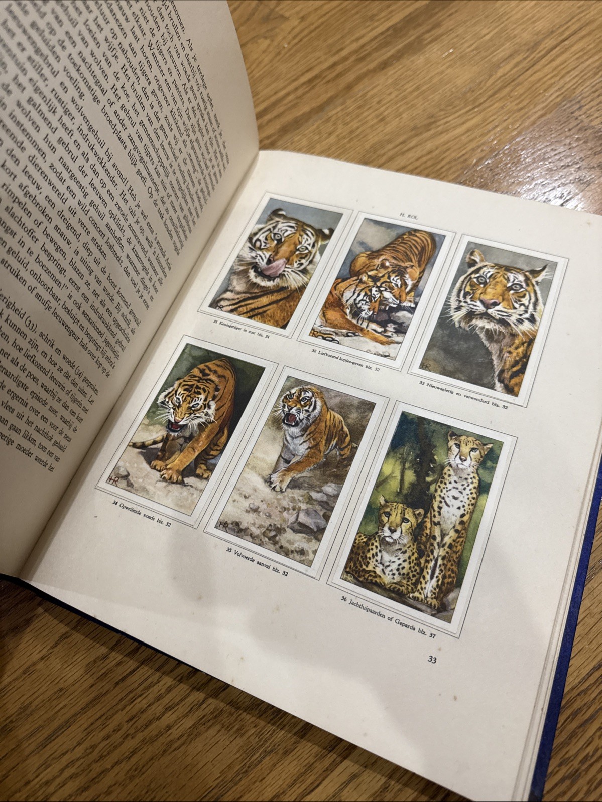 The product is a book titled "Dierenleven in Artis JPH Portielje-Scholten 1939" which contains German animal cards. It is a collectible item that offers insight into the wildlife and animals portrayed in the cards, providing a unique and informative resource for enthusiasts and collectors alike. The book offers a glimpse into the natural world through the lens of German culture, making it a valuable addition to any bookshelf or collection.
