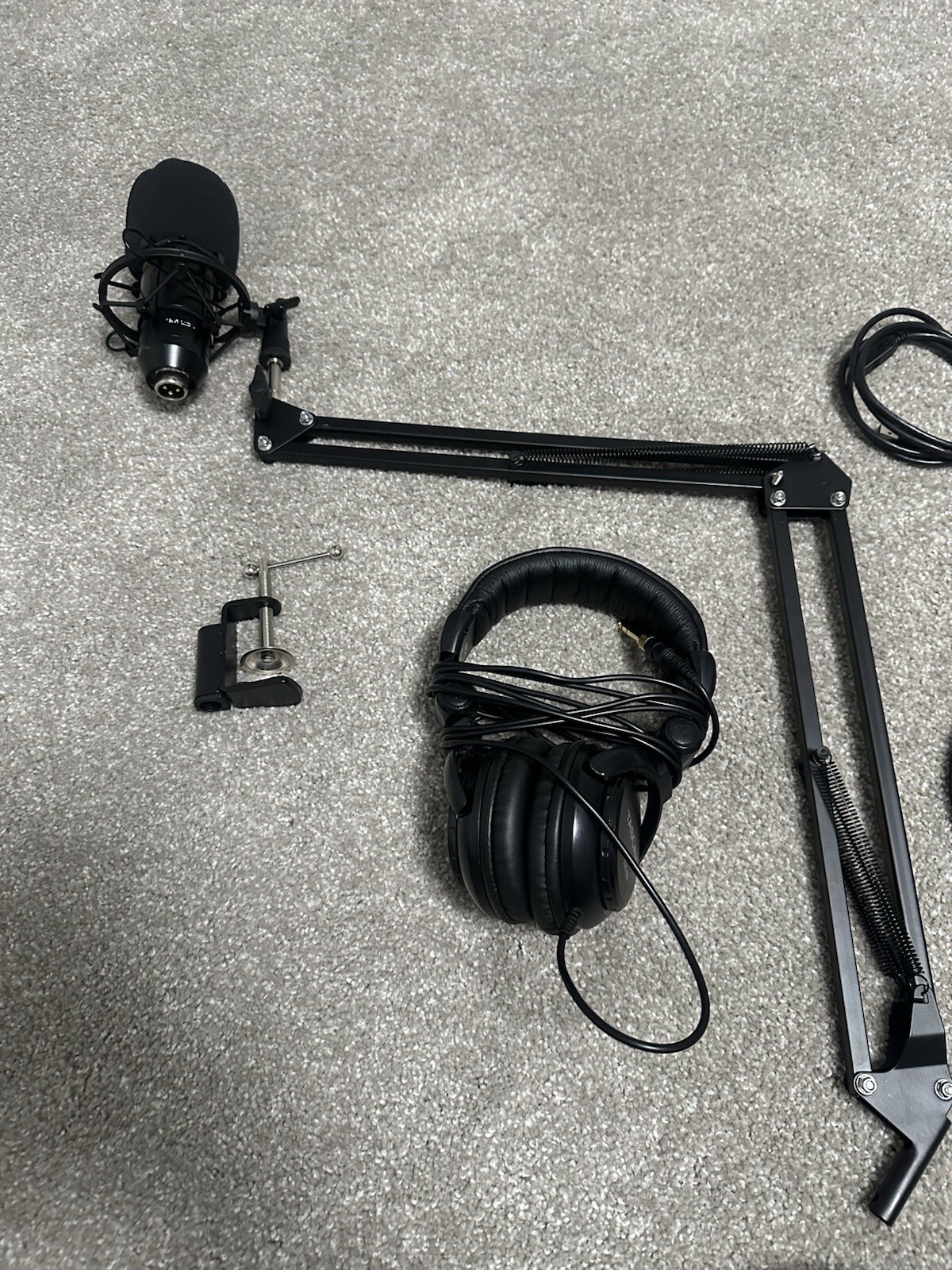 It comes with a microphone and headphones and all the cables are with it so you shouldn’t need any additional pieces