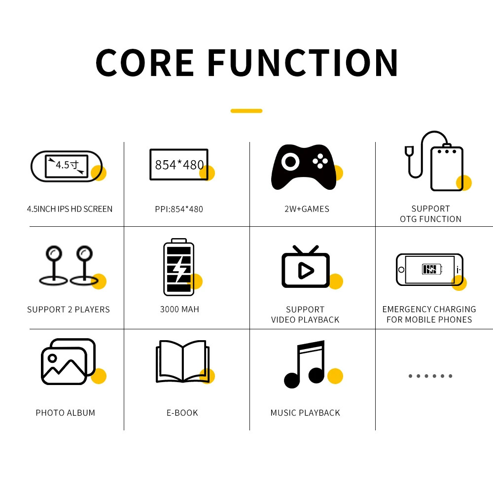 This handheld game console has multiple core functions, built in more than 20000+ selected classic games.IPS high-definition smooth screen with high-precision joystick, support for downloading and collecting games, support for 14 kinds of emulators, covering a wide range of games.