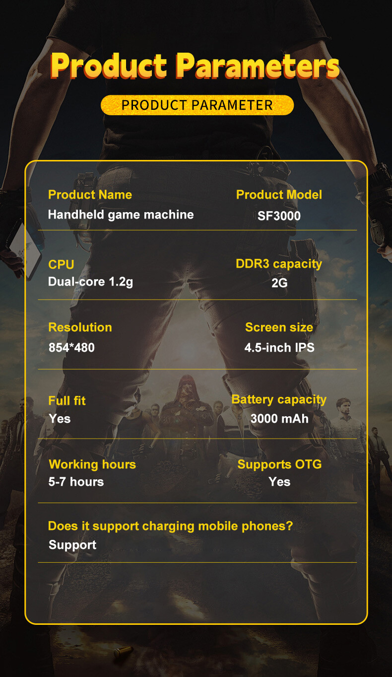 Built-in 3000mAh high-capacity lithium battery can be charged, fully charged to support 5-7 hours of game time. You don't need to worry about insufficient power when you go on business trip, travel or camping. (Note: Please fully charge the battery before the first use.) This handheld can be a power bank, charging your cell phone emergency.