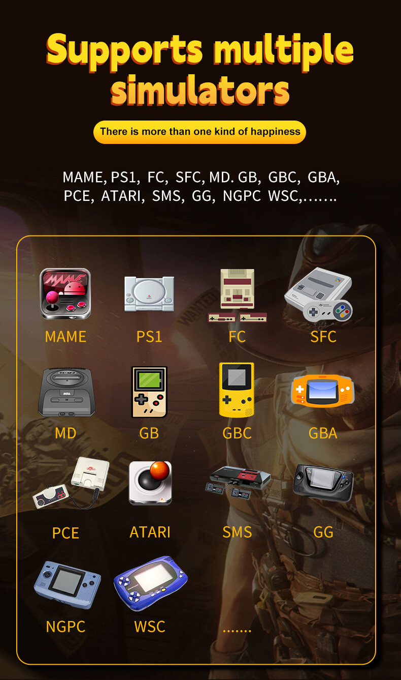 The game console built in a 64GB TF card, include 20000+ Games and 14 emulators, also support download games yourself.