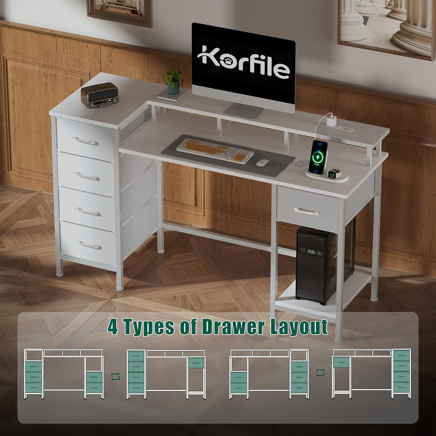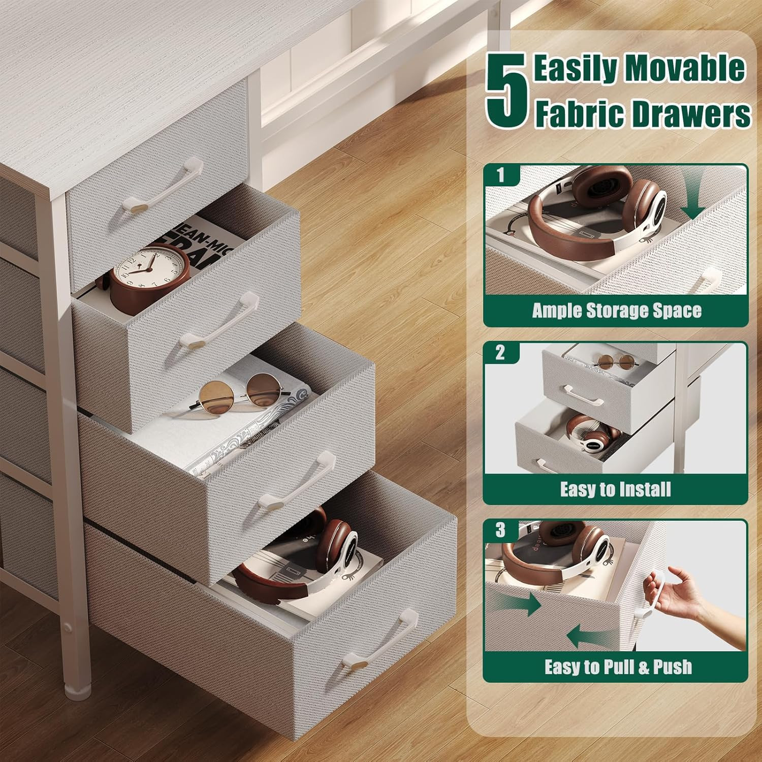 Large Storage Space: Computer desk comes with 5 fabric drawers, the drawer size is 9.2''x18''x7.5'', which can be used to store headphones, files or other sundries to help you save desktop space, and the drawers can be reversible, you can try different drawer mounting directions (left or right, above or below) to customize the storage space