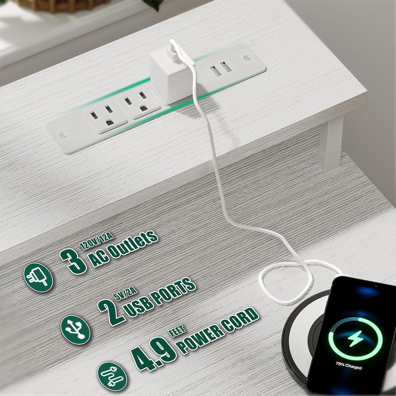 Built-in Charging Station: 47 inch computer desk equipped with 3 power outlets and 2 USB charging ports for your electronic devices, the home office desk with charging station makes it easy and convenient to charge your laptop, smartphone, gaming device or bluetooth device