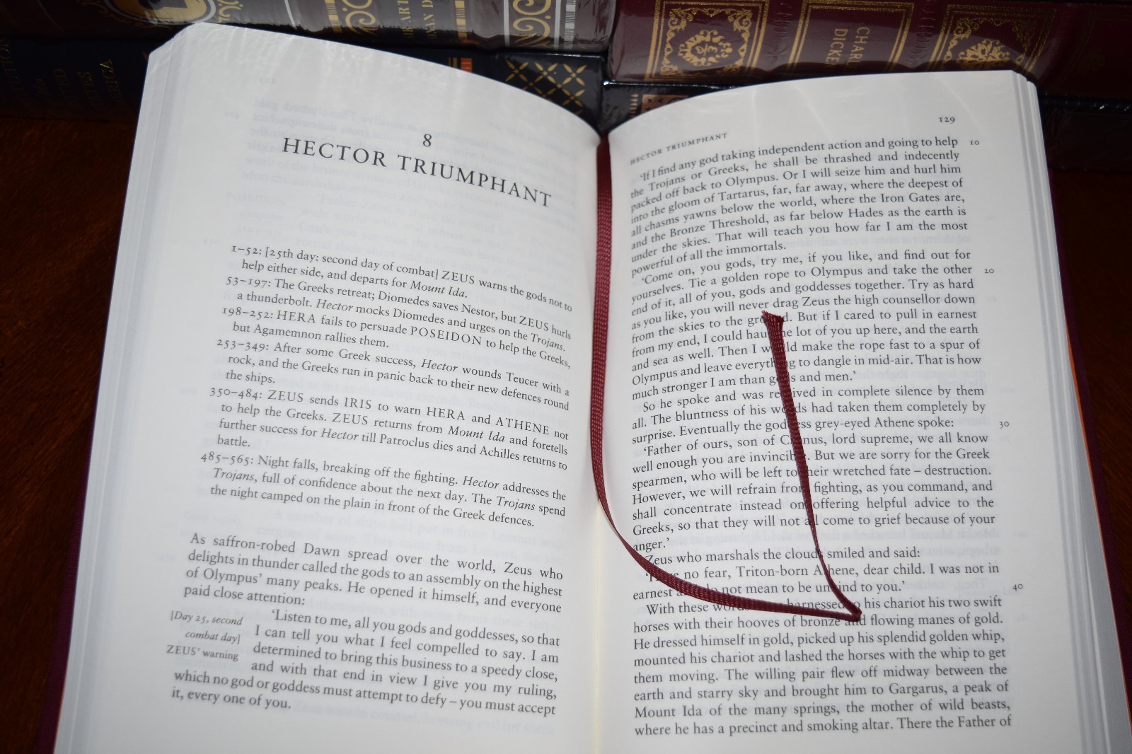 This is a brand new cloth bound hardcover with a ribbon marker deluxe edition of Iliad by Homer