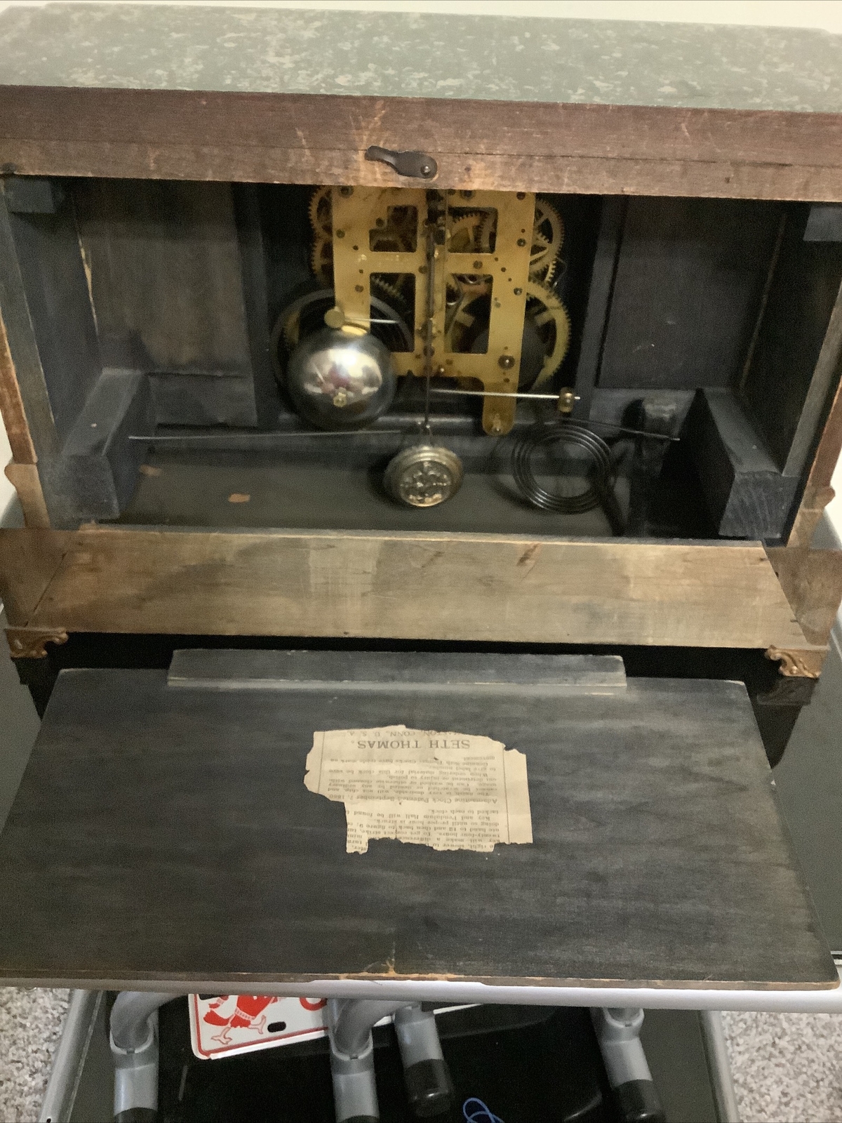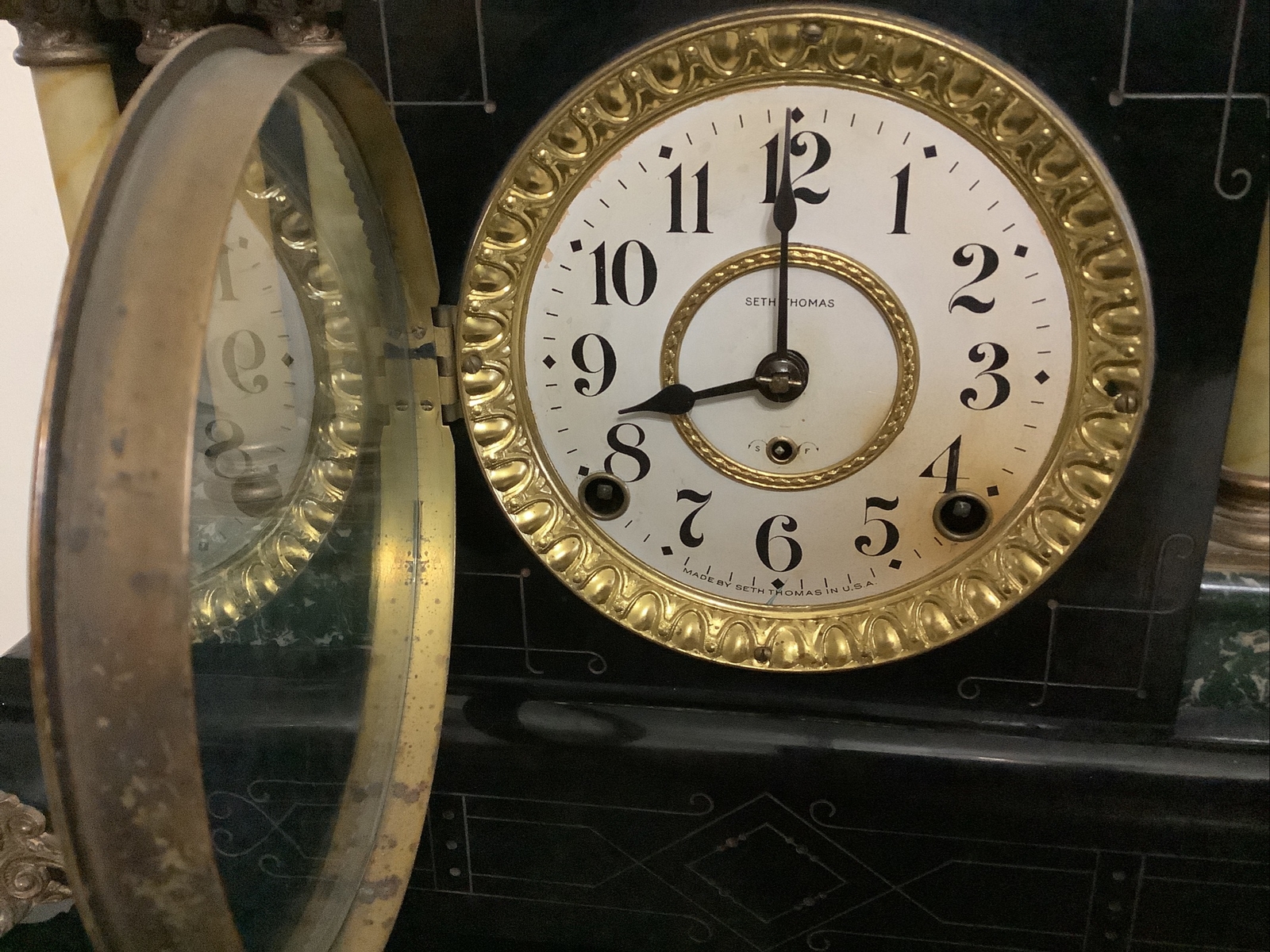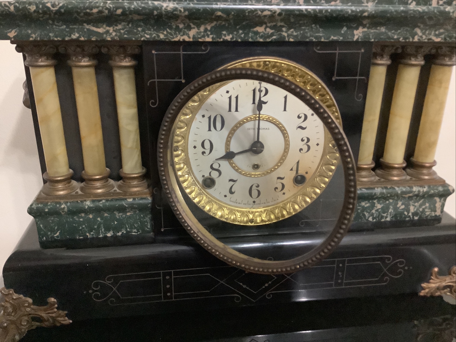 Vintage Seth Thomas 6 column mantel clock for restoration.There is no key to test this and it is untested.It has needs some restoration.This is sold as is, no returns.This might work or might not, a fun project to work on in your garage or workshop.