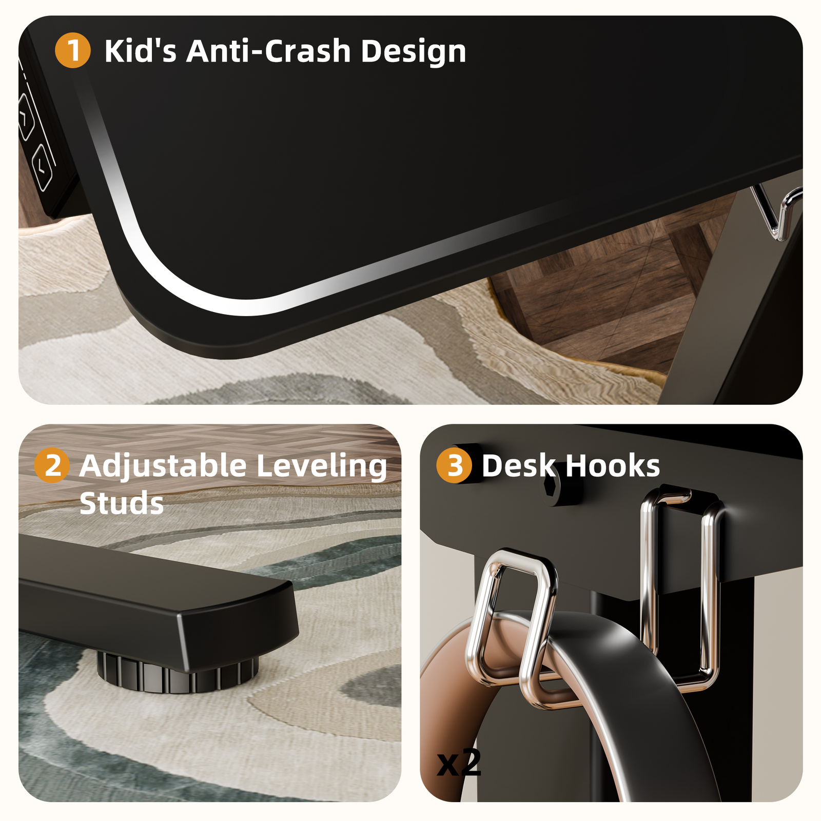 【SOLID CONSTRUCTION】The height-adjustable desk is made of heavy-duty steel, with a weight capacity of 70KG(154lbs) and travel speed of 14mm(0.6")per second, keeps the desk stable even when it rises to the highest point. The soft start/stop functions make the desk move smoothly and quietly (<50dB).