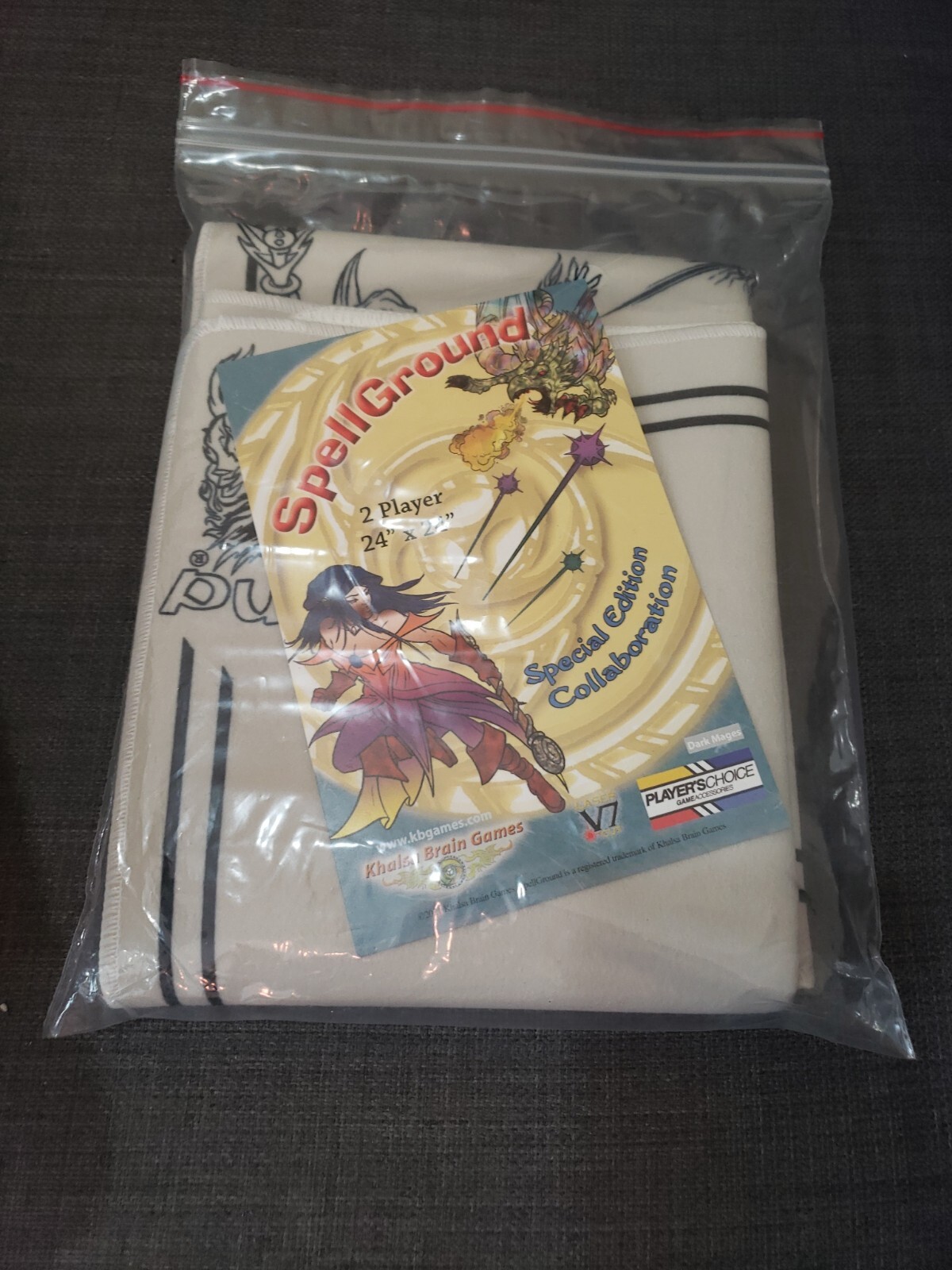 Enhance your gaming experience with this 2-player playmat from Khalsa Brain Games. The Spellground Beige playmat is perfect for fans of Yu-Gi-Oh! and features dark mages design, making it a Players Choice. Measuring 24 inches in length and width, it is made from V7 material and is perfect for any collectible card games.