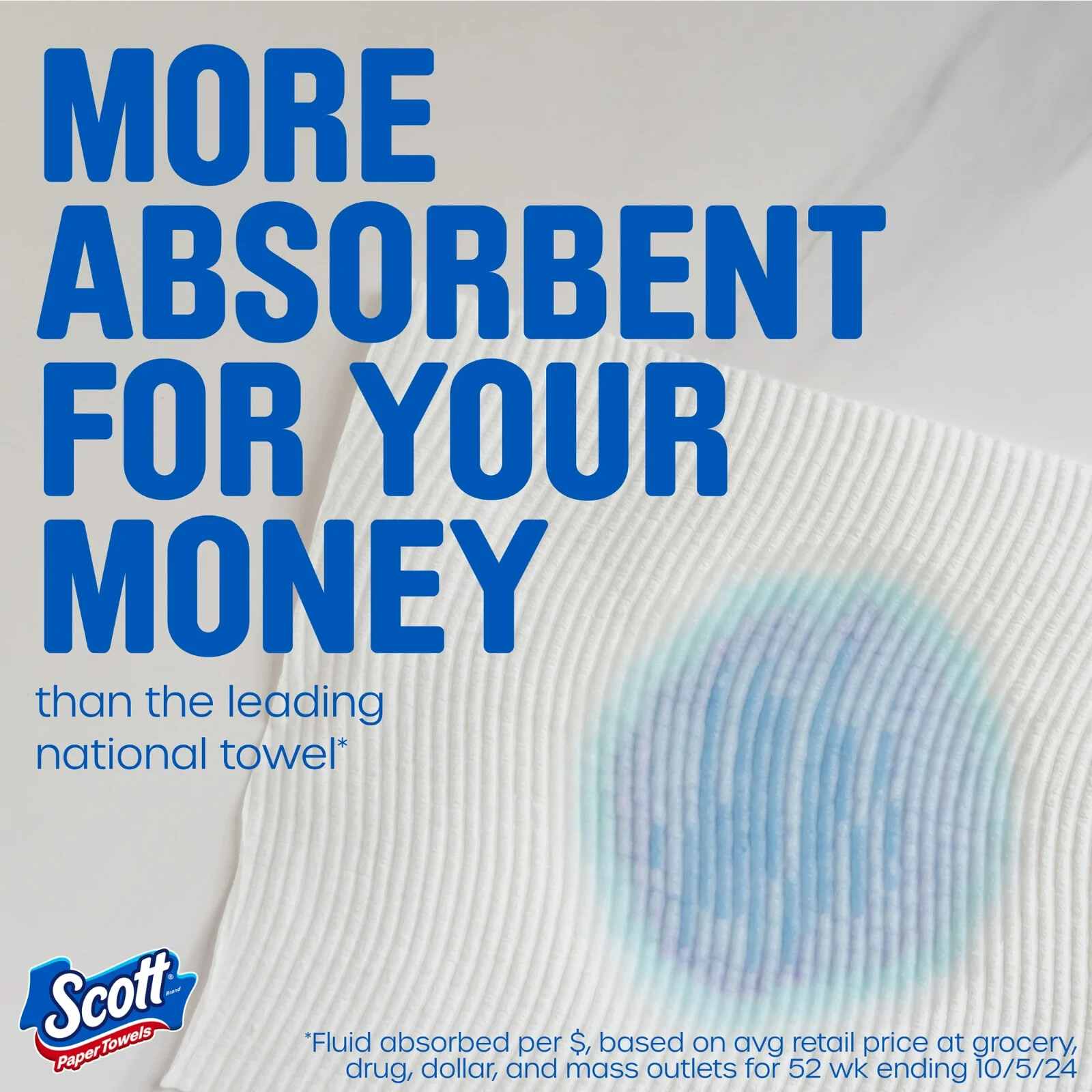 Now MORE Sheets on our Scott Choose-A-Sheet paper Towel Roll! For a quick clean at an incredible price, each paper towel roll comes with 108 sheets per roll and features Scott’s Choose-A-Sheet size that lets you choose the right sheet size for your task. And get more sheets per dollar* with Scott Choose-A-Sheet Paper Towel Rolls. Scott Paper Towels are more absorbent than the leading brand for your money** to help you tackle everyday messes at the right value. Our paper towels are a trusted combination of value and strength, so you can use them anytime, anywhere, no matter the mess. These disposable paper towels are virtually lint-free when you wipe to help you leave any surface spotless. Scott brand paper towels are FSC-certified and have 100% paper fibers sourced from responsibly managed forests. Buy Scott Paper Towels in bulk and save yourself trips to the store or extra deliveries. (*vs. the leading brand regular roll select-a-size) (**Fluid absorbed per dollar, based on average retail price at a combination of grocery, drug, dollar, and mass outlets for 52 week ending 12/30/23)