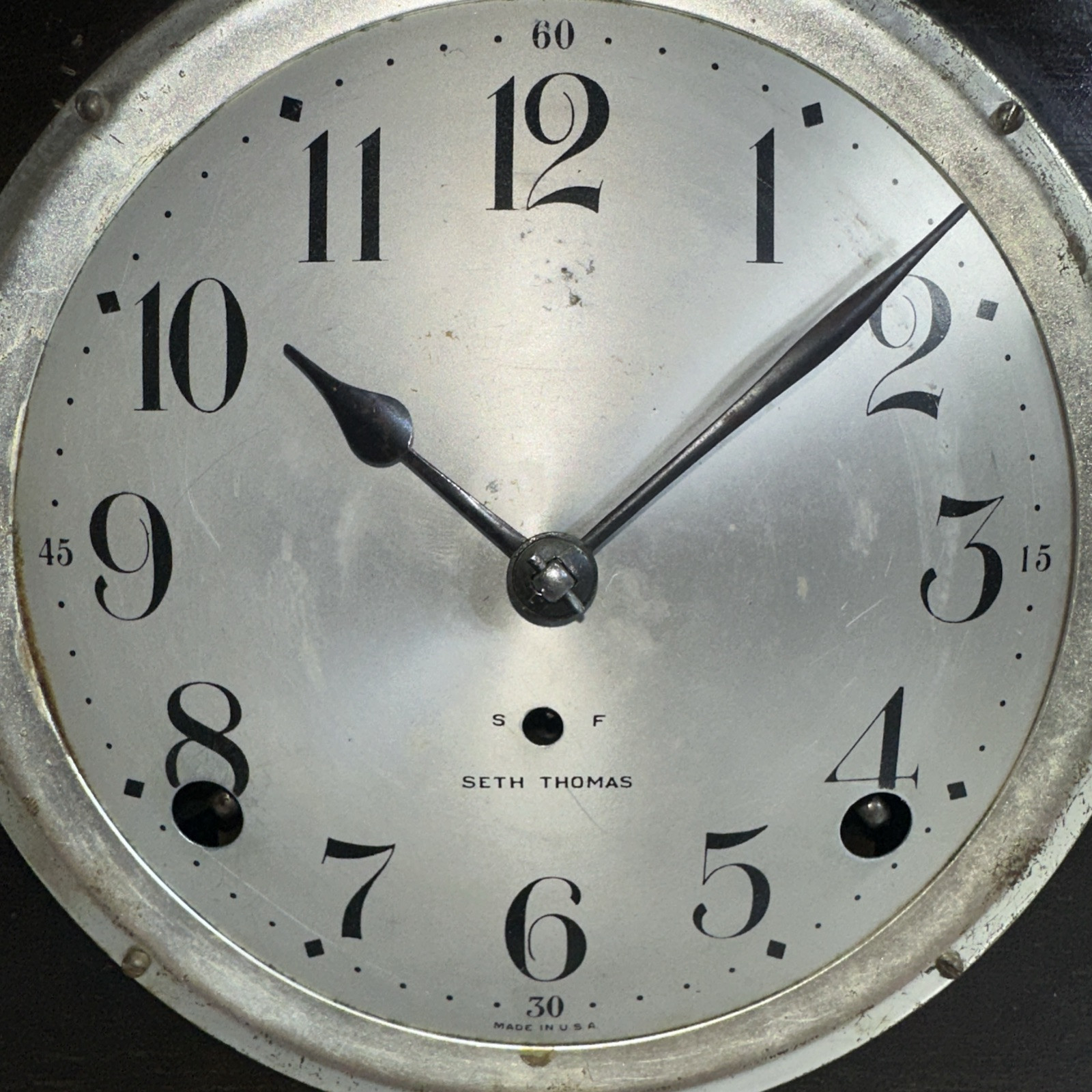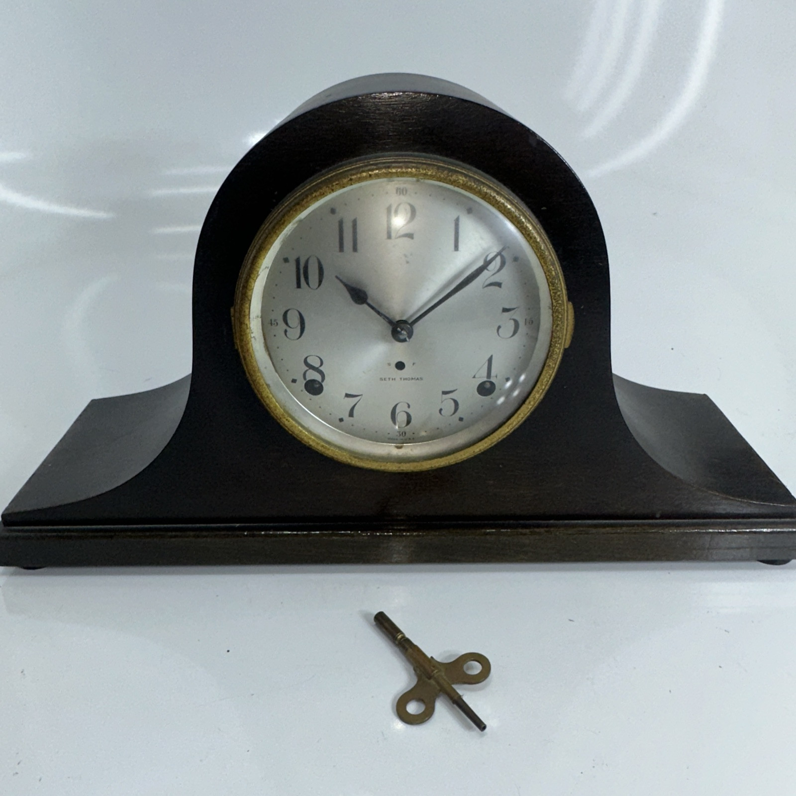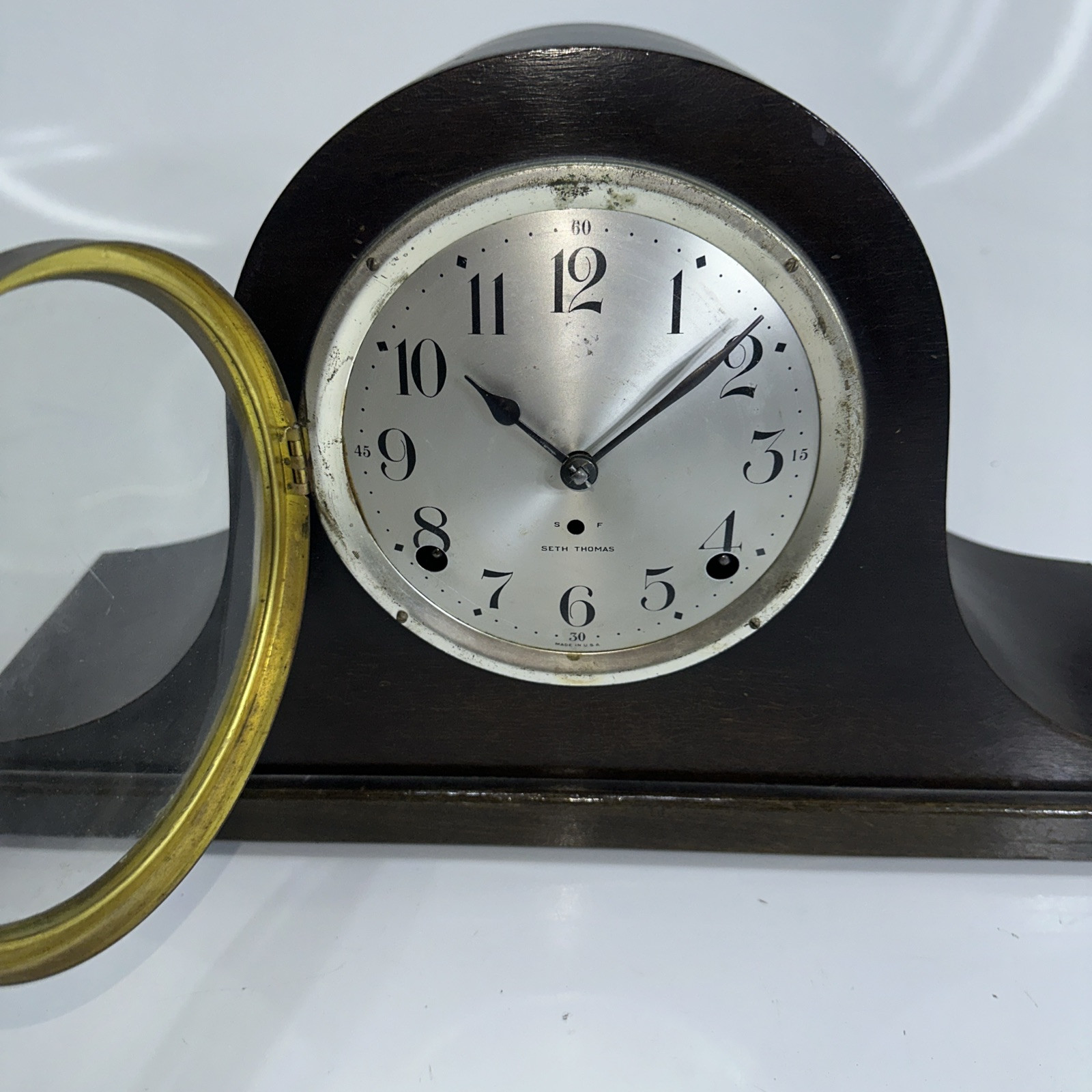 This is an antique Seth Thomas mantle clock from the 1920s. The clock has a traditional design and would make a decorative piece for any room. It is a vintage item that reflects the style of the early 20th century.