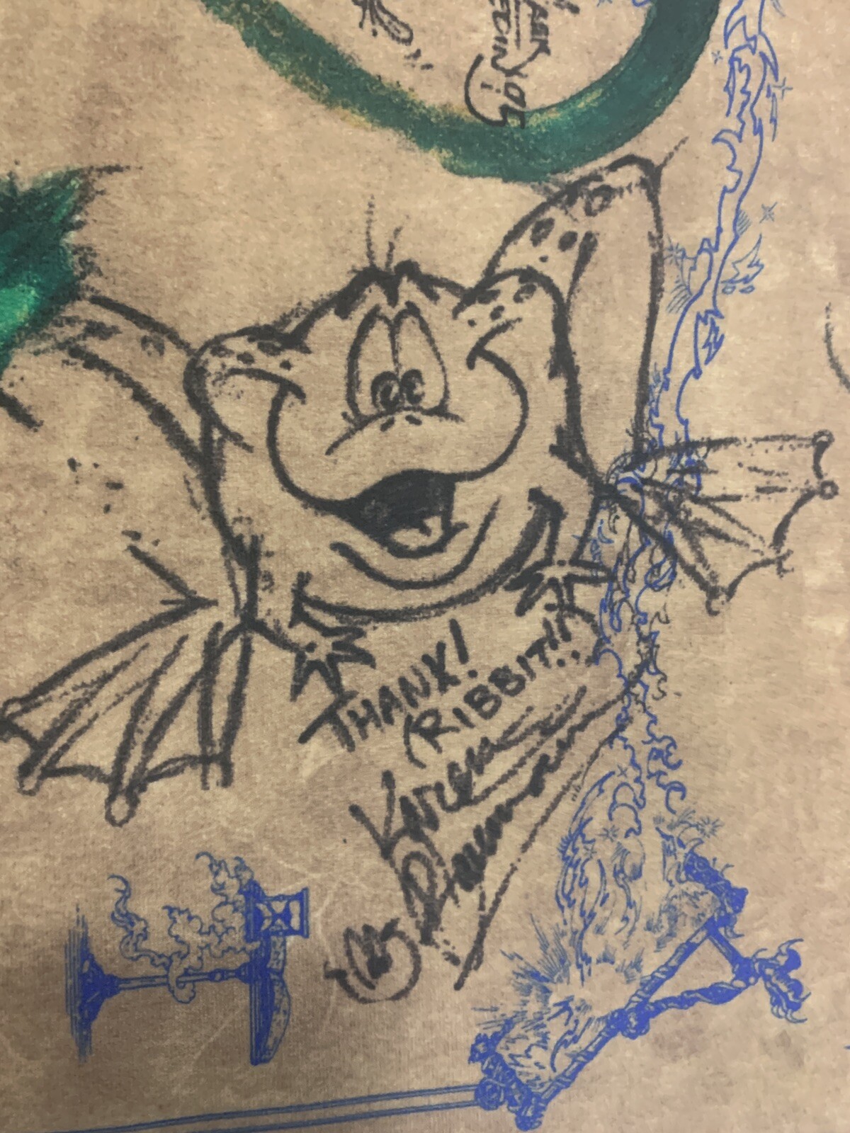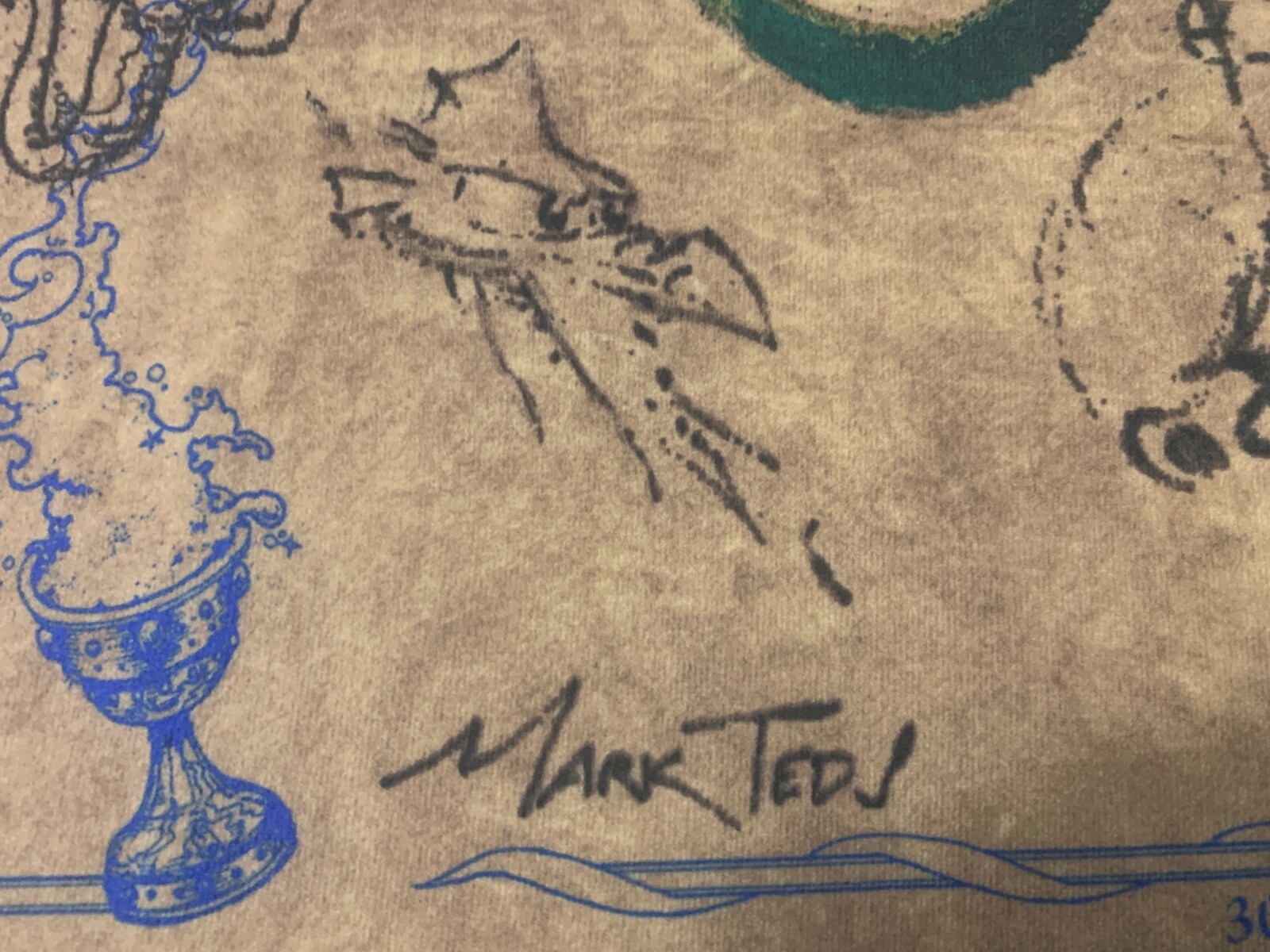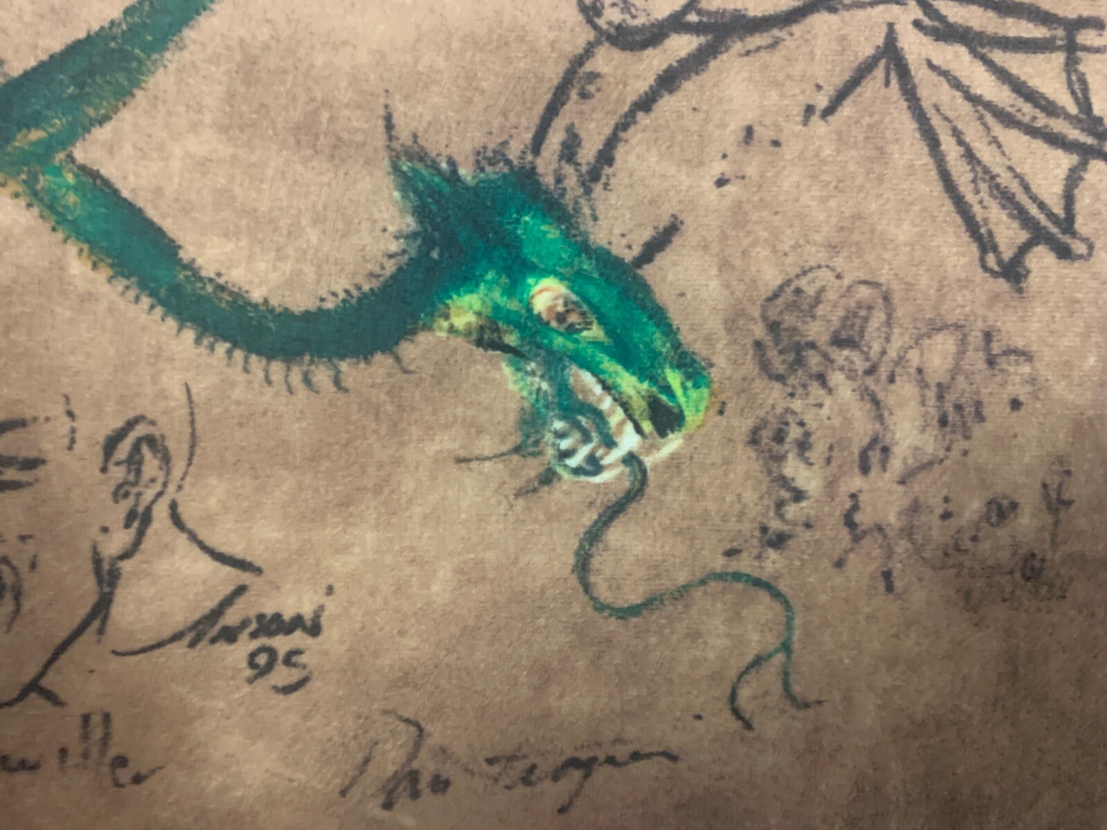 This is a replica of Japji Khalsa's own personal playmat that he played on that he would take to tournaments and conventions. This iconic playmat has famous Magic The Gathering artist sketches and signatures such as Mark Tedin, Melissa Bensen, Peter Venters, Anson Maddocks, Rob Alexander and Mark Poole. The original SpellGround artist himself Jeff Brain has graced this playmat with a green dragon that flows across the SpellGround mat. This playmat also features signatures from the inagrual 1994 Magic the Gathering World Championship players such as Zak Dolan and Bertrand Lestree.