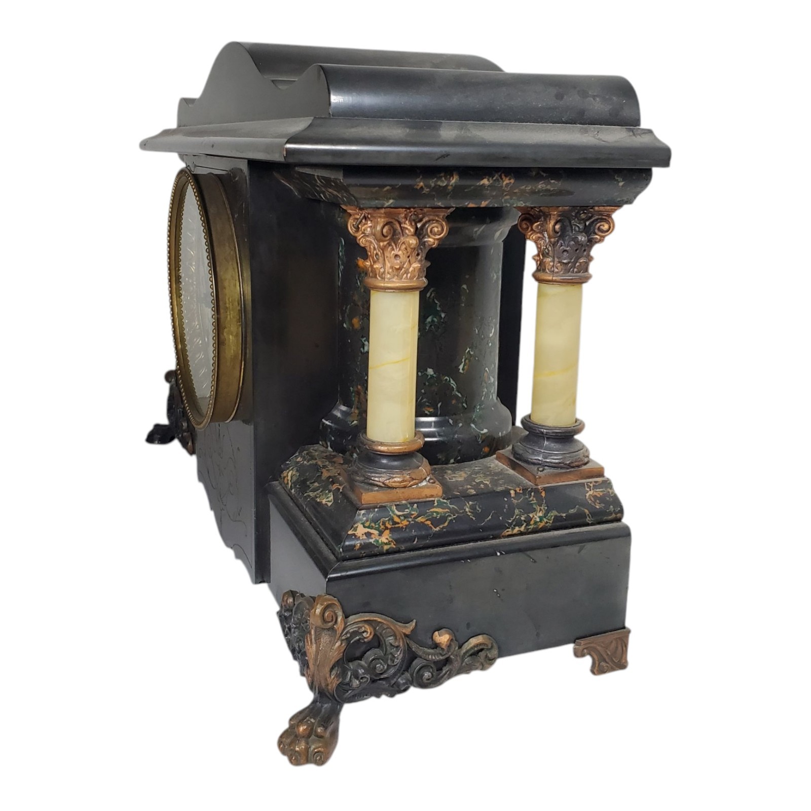 Up for sale is this Seth Thomas Shasta adamantine mantel clock. No pendulum or key. It's in good shape for its age with surface wear, needs cleaning.