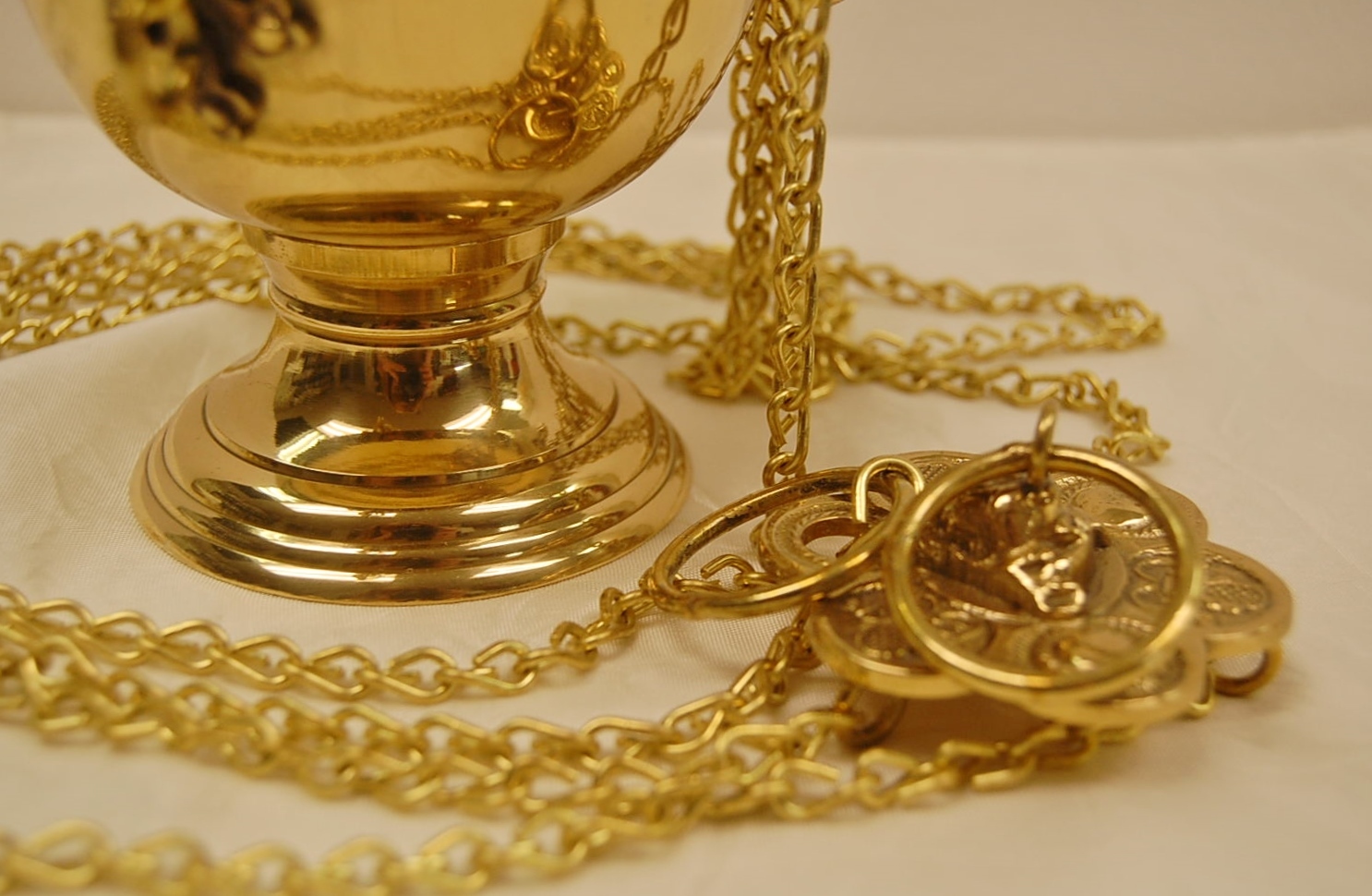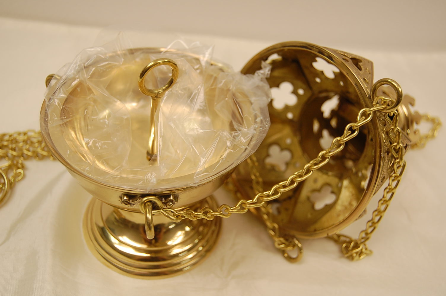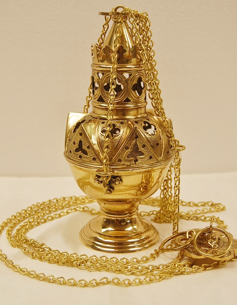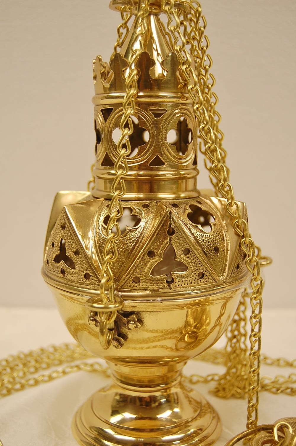 BRASS TRIPLE CHAIN CHURCH CENSER / THURIBLE - 245 - (CHURCH, INCENSE)