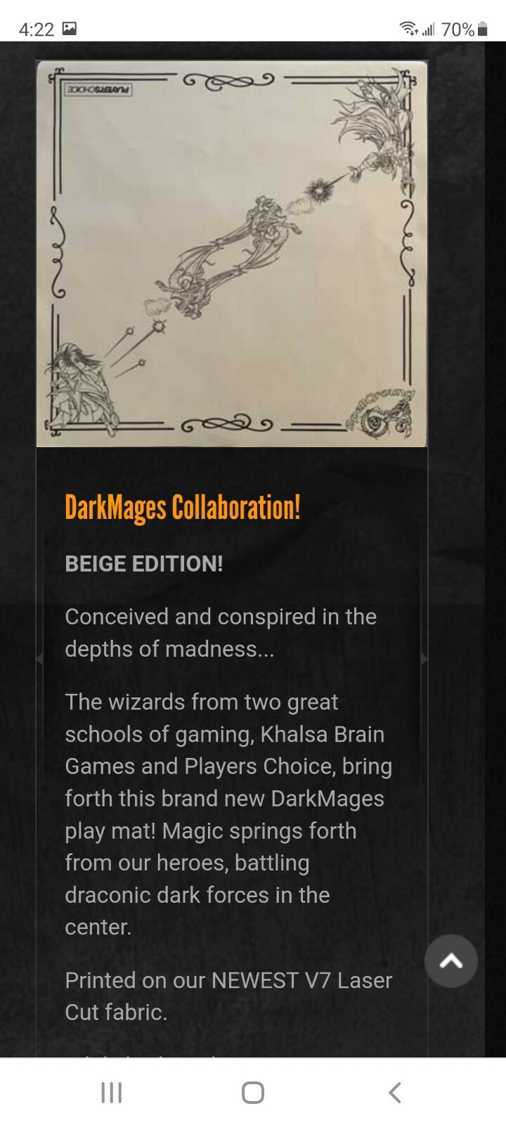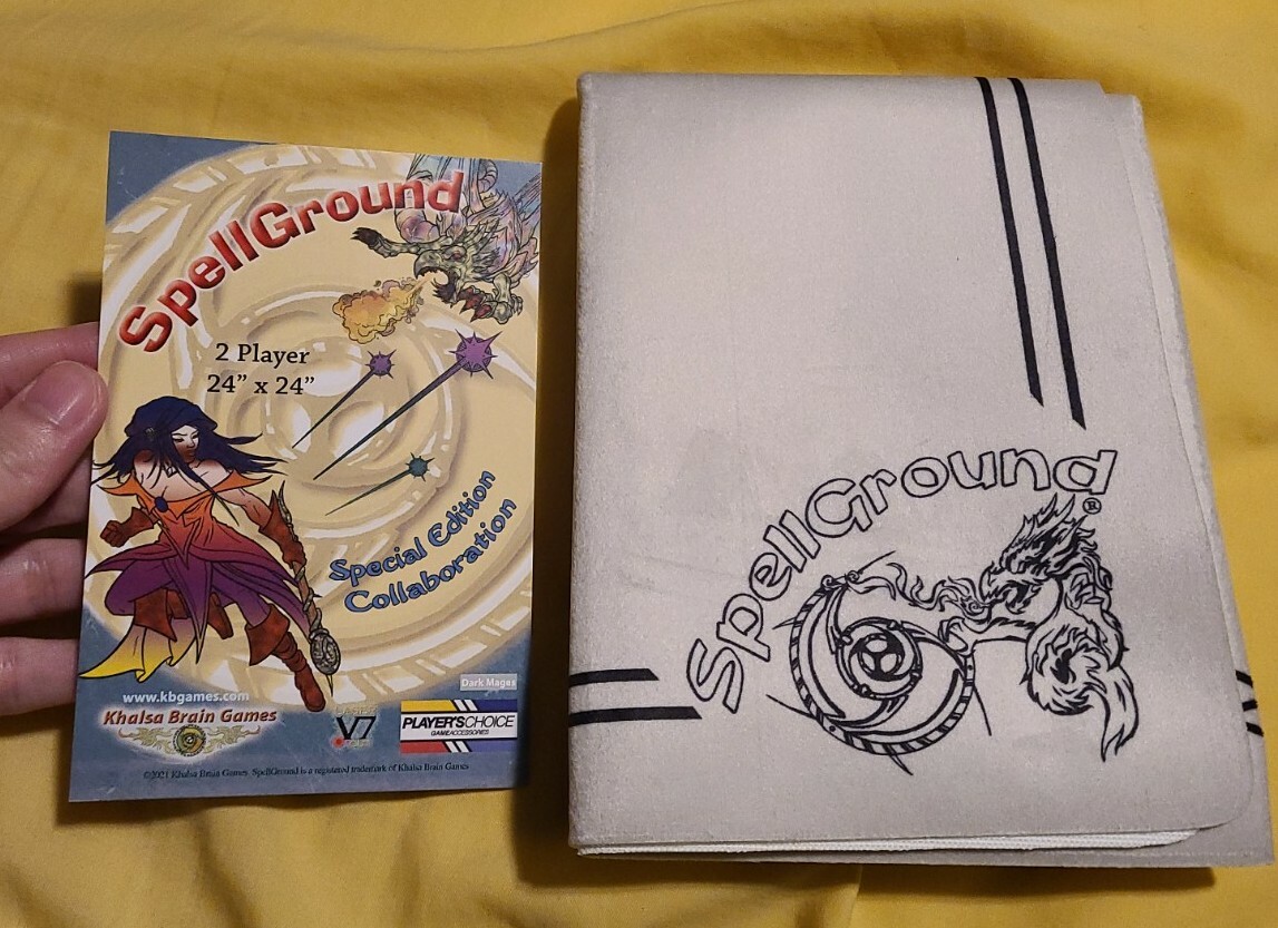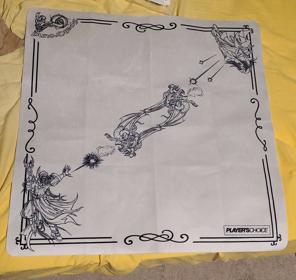 The wizards from two great schools of gaming, Khalsa Brain Games and Players Choice, bring forth this brand new DarkMages play mat! Magic springs forth from our heroes, battling draconic dark forces in the center.