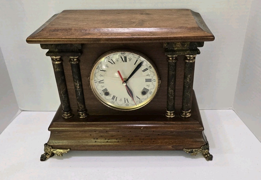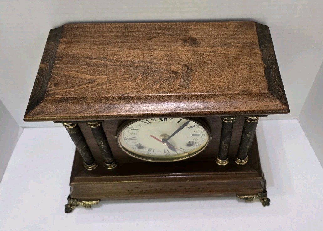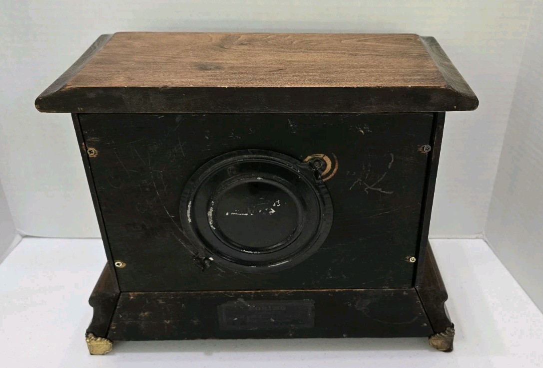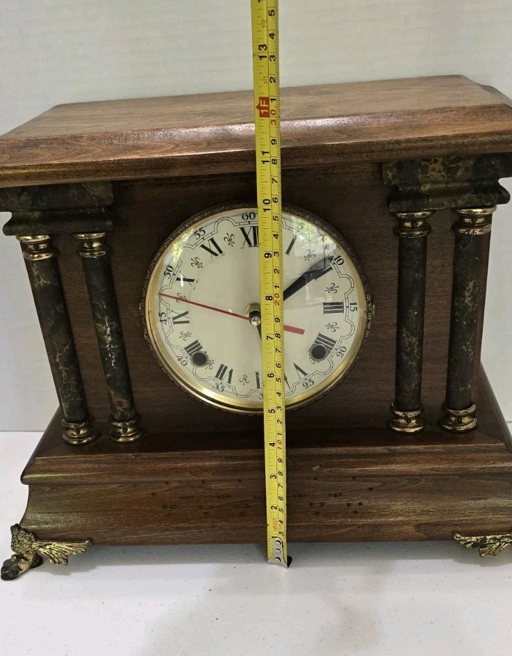 This collectible clock is the perfect addition to any home decor, and is sure to impress with its unique features and timeless design. The clock is an original antique, and was manufactured in the United States. It is a mantel clock, and has a brown color. The clock's frame material is wood, and it has a classic, vintage look.