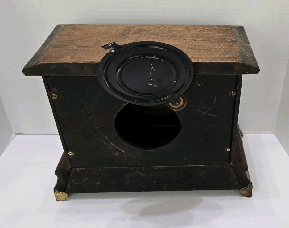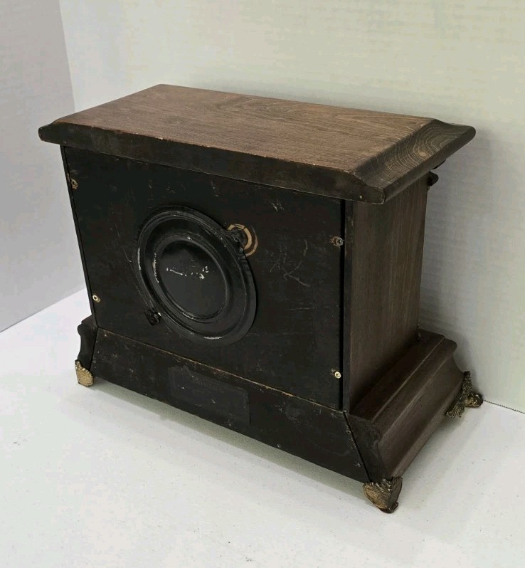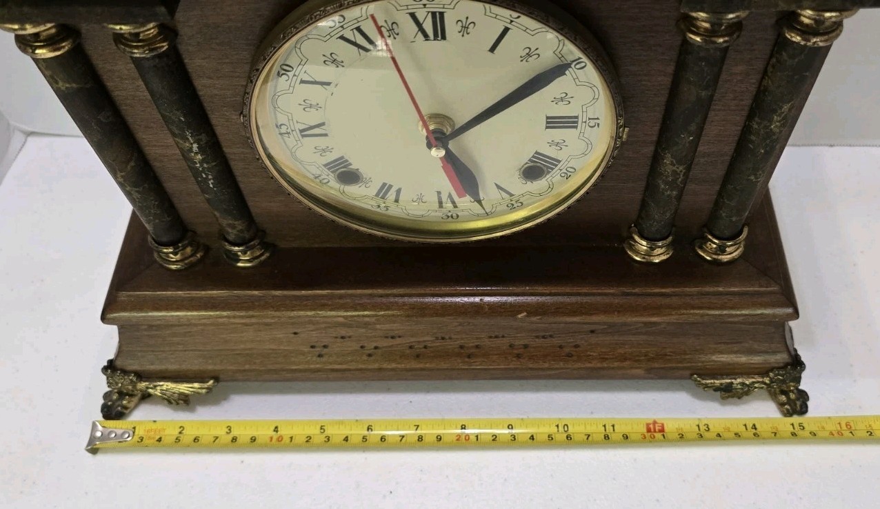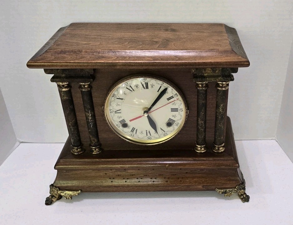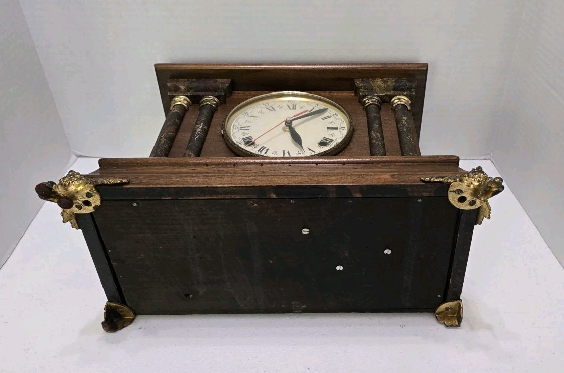 This collectible clock is the perfect addition to any home decor, and is sure to impress with its unique features and timeless design. The clock is an original antique, and was manufactured in the United States. It is a mantel clock, and has a brown color. The clock's frame material is wood, and it has a classic, vintage look.