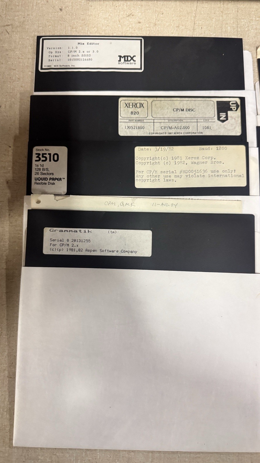 Vintage Xerox 820 Dual 8.25" Inch Floppy Drives and CP/M 10 Software Disks Mix Editor 1.1.0CP/M A02.000GrammatikSupercalcDataStarPMS-80DiagnosticsExample Disk 1 + 2Crosstalk I have not tested either drive or the power supply. Selling As-Is