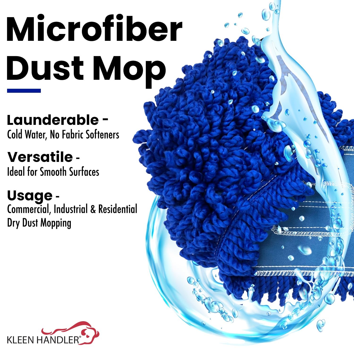 Kleen Handler 48 Inch Microfiber Dust Mop Head Replacement 3 Pack Blue
