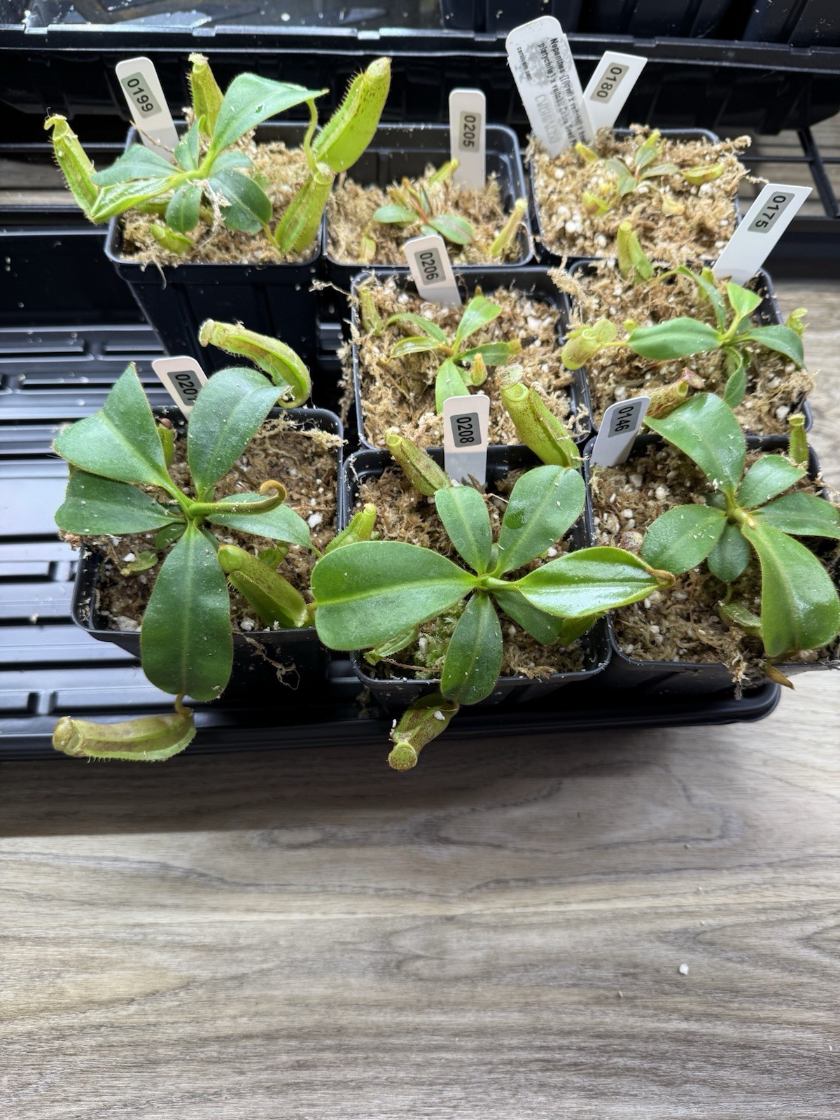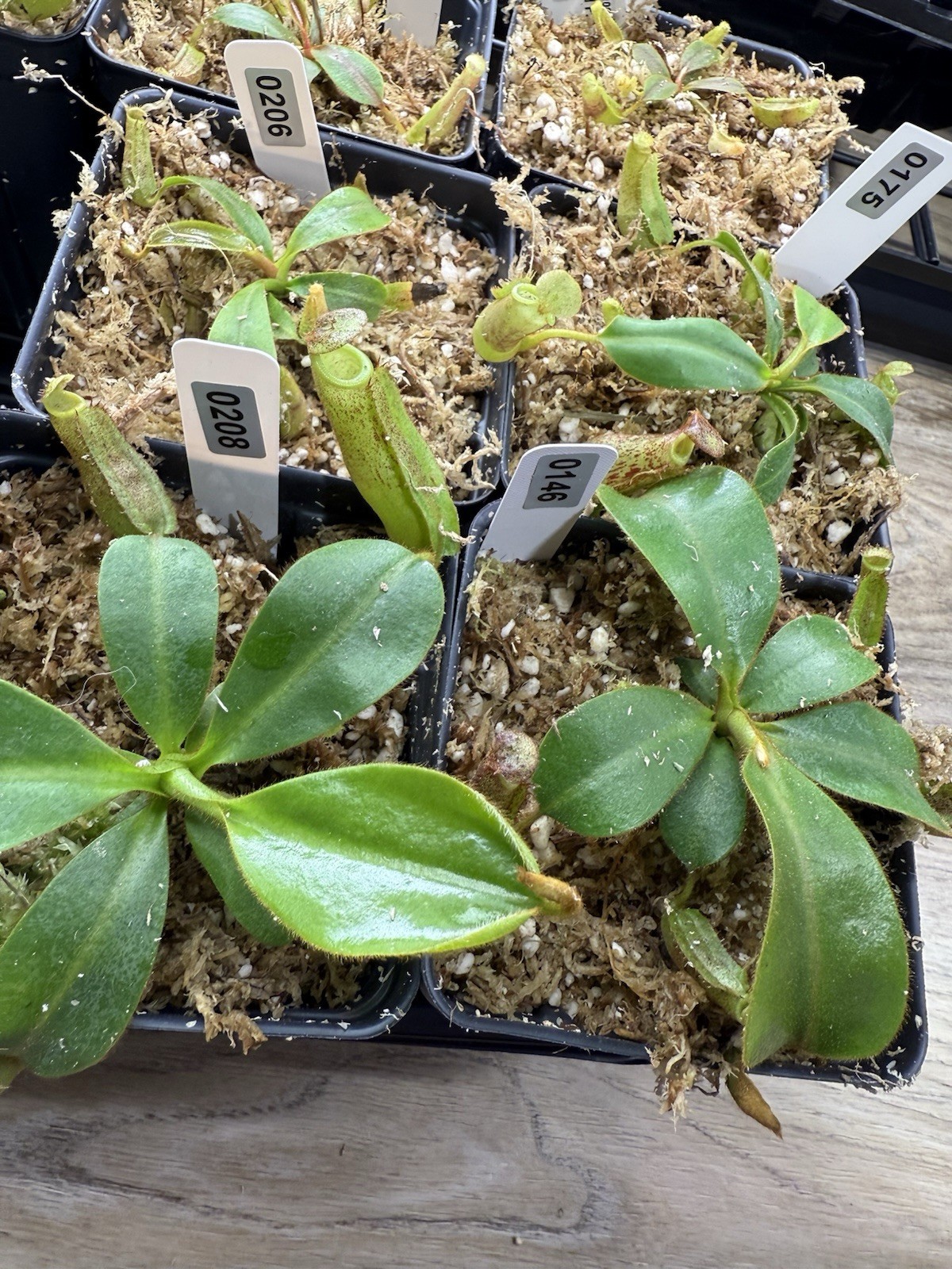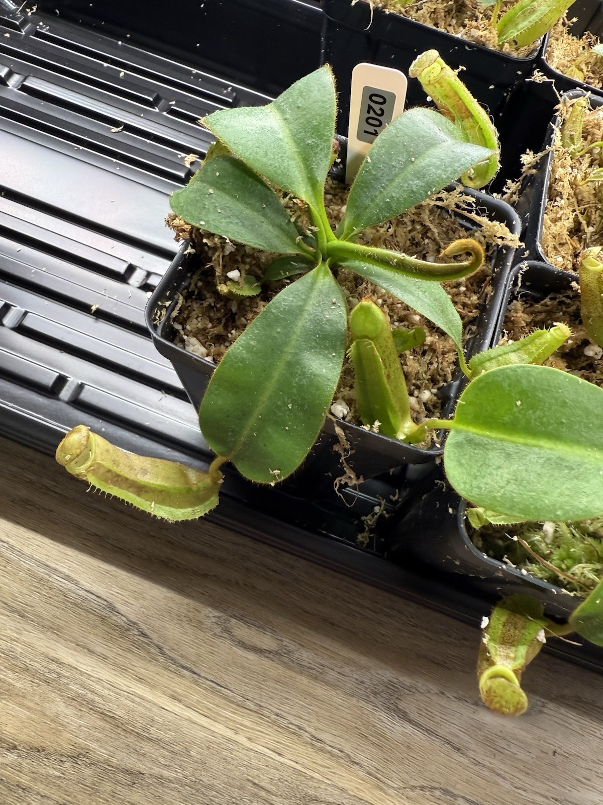 The product is a single seedling of a rare carnivorous plant hybrid, specifically the combination of Lowii X Vetchii X Boachiana and Platychila. The seedling is highly sought after by collectors and enthusiasts due to its unique and complex genetic makeup, making it a valuable addition to any plant collection. With its intriguing characteristics and predatory nature, this plant is sure to be a fascinating and visually appealing addition to any indoor or outdoor environment. Select your plant and message me the tag number you want