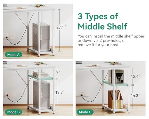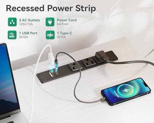 【Power Outlets & Charging Ports】 computer desk is equipped with 3 power outlets & 1 USB charging port & 1 Type-C port for your electronic device. You can easily and conveniently charge smart phone, gaming gear and Bluetooth devices when you are working or playing games.