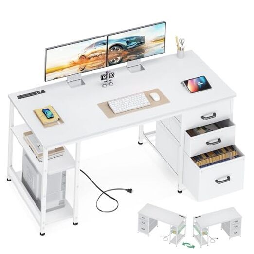 【Work from Home Reversible Desk】The study desk measures 51.2" L x 18.9" W x 29.7" H. In order to better adapt to different room structures and user habits, the computer desk is designed in two installation forms. The chest of fabric drawer and file cabinet can be installed on the left or right side of the main desk. So depending on your need, you can customize your own desk.