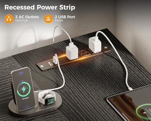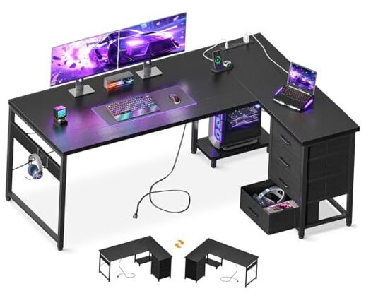【USB Charging Ports & Power Outlets】This L shaped gaming desk comes with a built-in power outlet, which provides 3 AC outlets and 2 USB ports. This desk streamlines device charging, ensuring both convenience and safety. Whether for gaming or intense work sessions, stay fully powered up without messing up your space with additional extension cords.