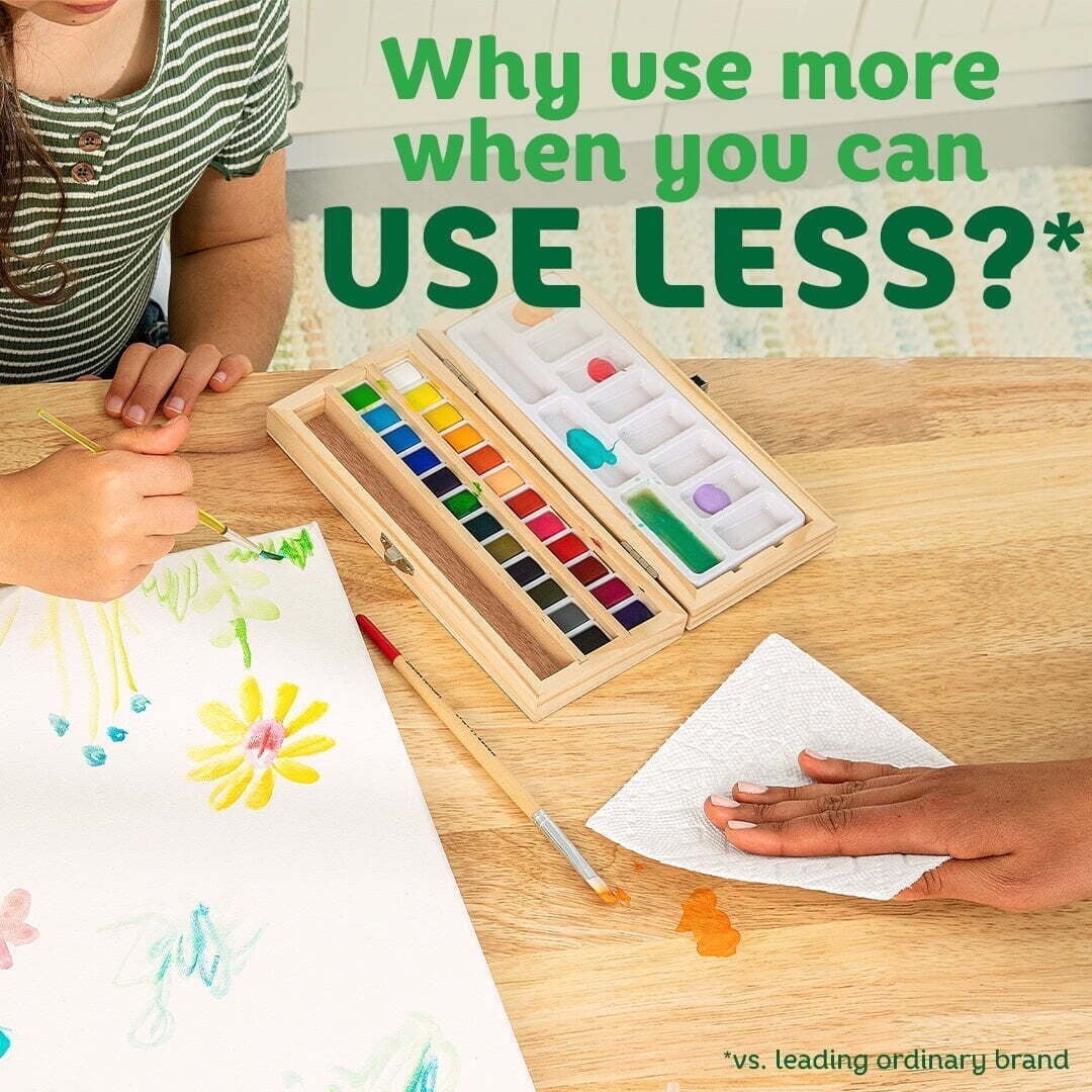 Be ready to tackle messes and spills with Paper Towels Select-A-Size 12 Double Rolls. Each sheet of paper towels is 2x more absorbent, so you can use less and pick up spills and messes quicker than the leading ordinary towel brand. paper towels Select-A-Size sheets are versatile, so you can choose your sheet size depending on your mess. And if you're buying bigger packs, you'll always have on hand. paper towels have your back in and out of the kitchen. Whether it’s juice on the counter or ice cream on the table, paper towels make sure no mess will mess with you.