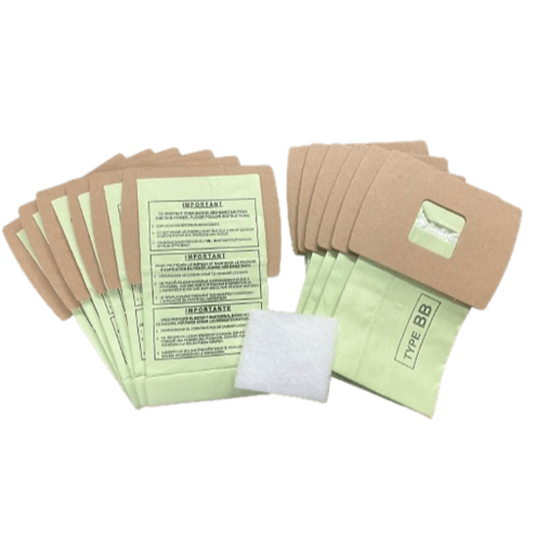 Package of 12 Dust Collection Bags + 1 Filter. Genuine HomeKleen360 Micro-Clean® vacuum bags filter 99.7% efficient down to 5.0 microns and can capture particals as small as 0.1 micron. Fits Models: BB870, BB880, BB900, BB1000, BB1100, BB1200, MV160, AK1BB8A *This is an aftermarket replacement product. This is not a product of, nor is it sponsored or endorsed by the origianal equipment manufacturer. Any literature used is strictly for compatibily purposes.