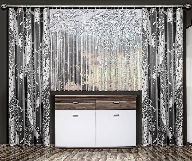 DAGI 3-Tlg. SET ( 1x Fadengardine 220cm Breite/170cm Länge, 2x DAGI Vorhang )