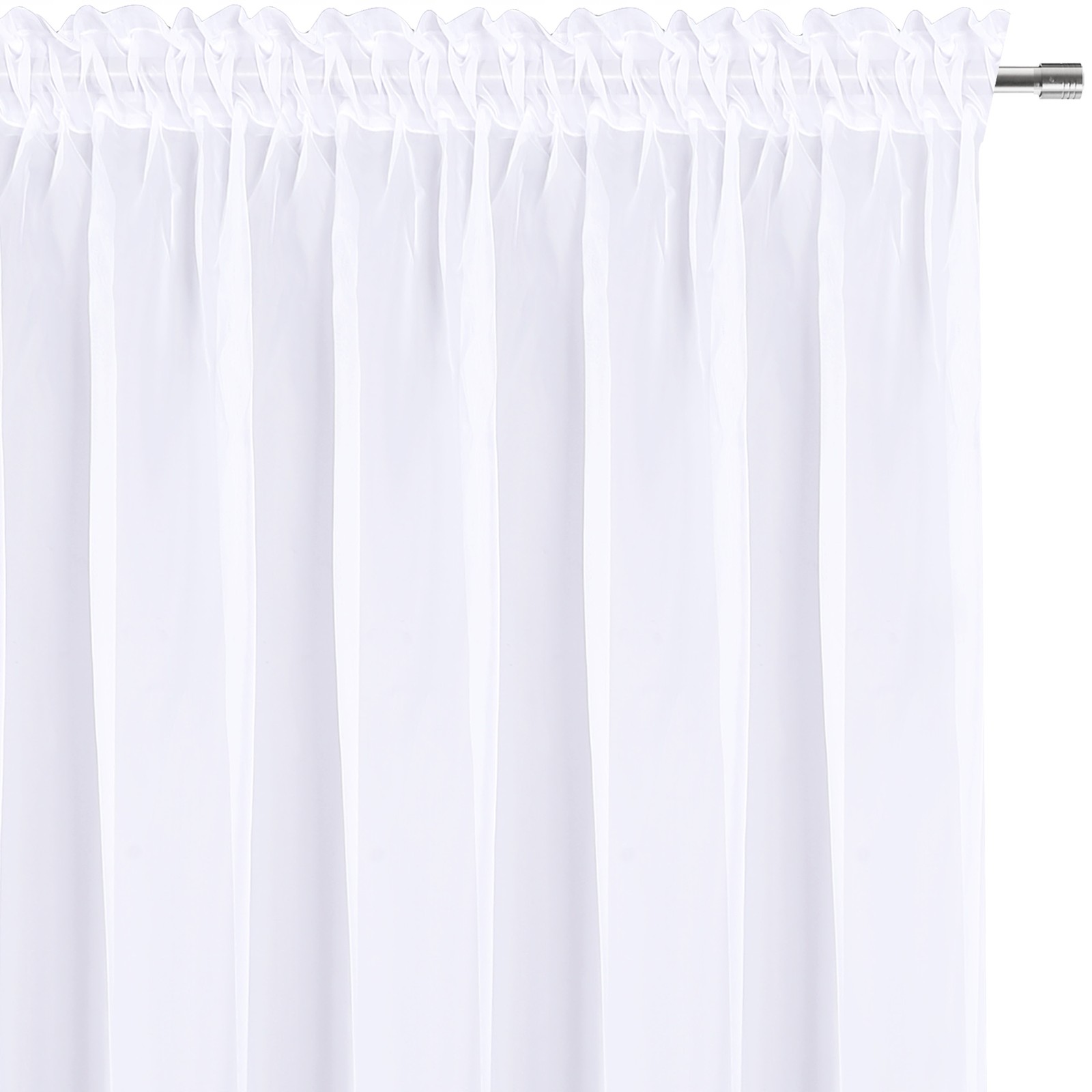Im oberen Teil hat der Vorhang ein eingenähtes Kräuselbund mit einem Tunnel. Dieses Bund ermöglicht ein effektives Knittern des Stoffes. Der Voile-Vorhang vervollständigt das Arrangement in einem modernen oder klassischen Stil Ihres Schlafzimmers, Esszimmers, Büros oder Ihrer Küche.Der Vorhang passt über eine Gardinenstange mit einer Breite von 200 - 250 cm.