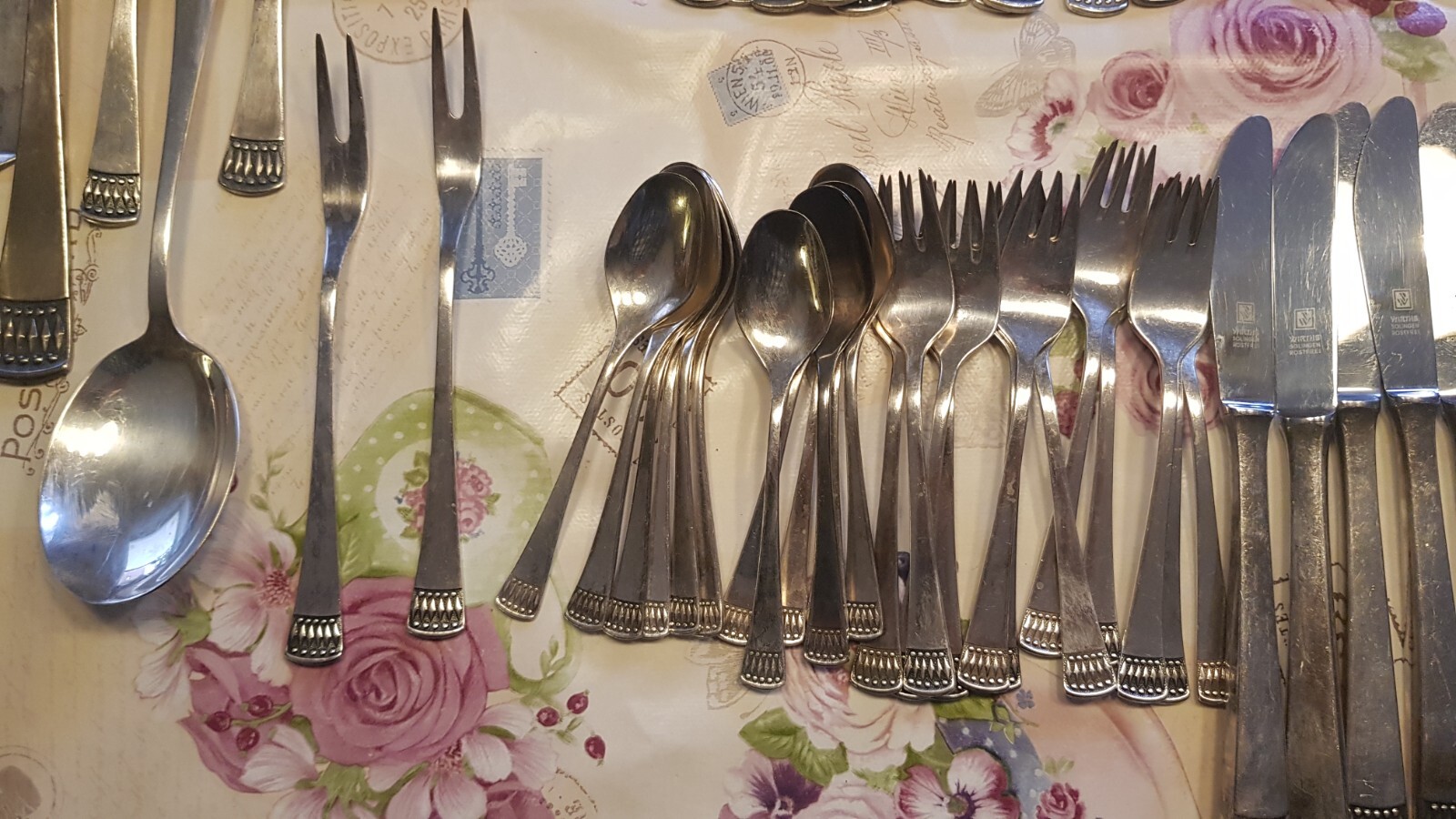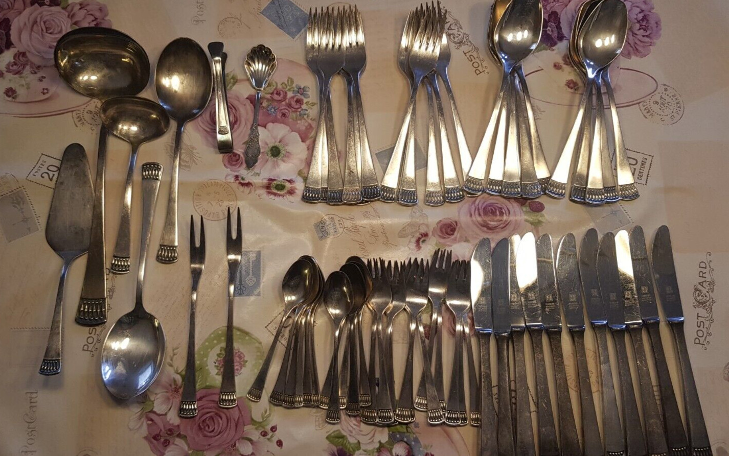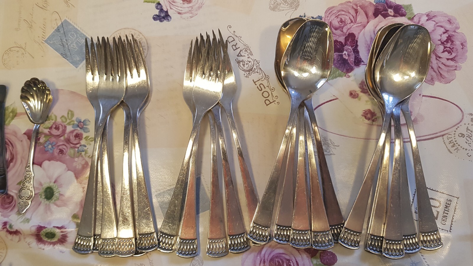Das Set enthält Gabeln, Löffel und Messer für 12 Personen, alle aus hochwertigem versilberten Material gefertigt. Mit seinem zeitlosen Design und der hochwertigen Verarbeitung ist dieses Besteckset ideal für den täglichen Gebrauch oder besondere Anlässe geeignet.