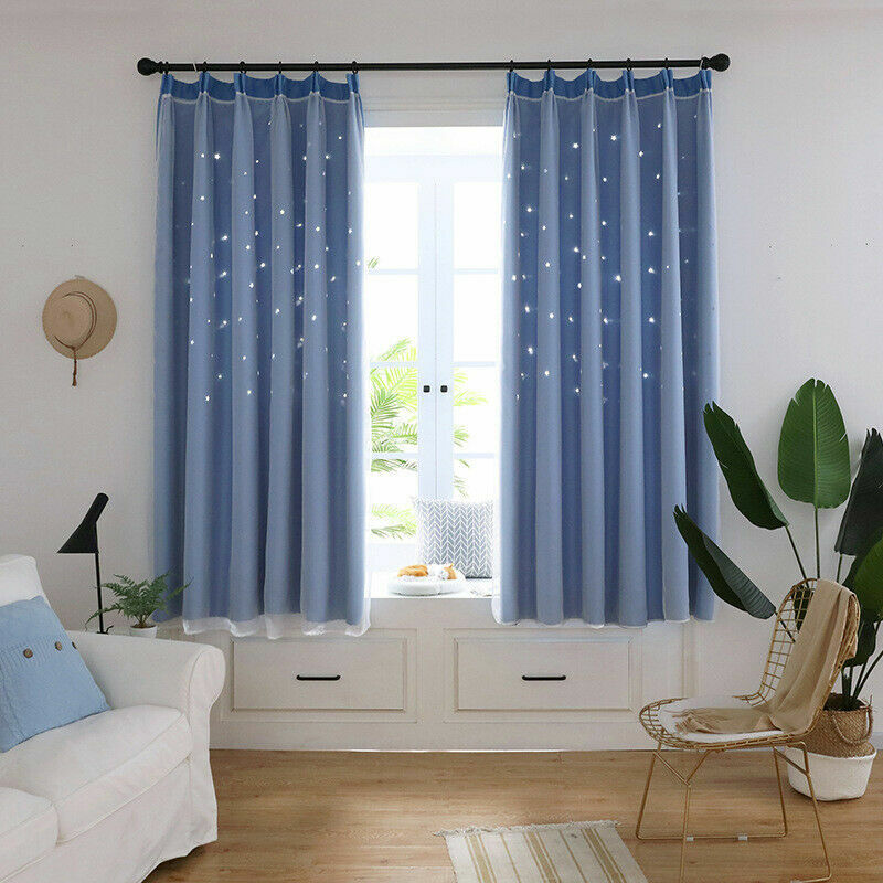 Verdunkelungsvorhang mit hohlen Stars 2 Schichten für Erkerfenster, Spitze, Drapierung, Haken oben