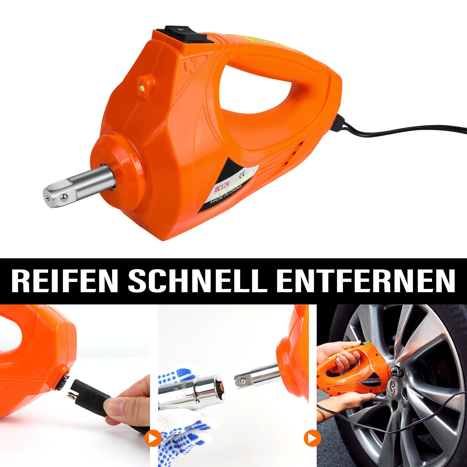 Herausragender Elektroschrauber: Mit einem max. Drehmoment von 340/420/480 N. M. ermöglicht der Elektro-Schlagschrauber ein Auf- und Abschrauben in wenigen Sekunden. Es sind 2 Stück Hülsen für Schrauben in 4 Größen erhältlich, passend zu mehr Fahrzeugen mit unterschiedlichen Größen von Radmuttern auf dem Markt. Bitte wählen Sie die richtige Hülse aus und halten Sie die Einschalttaste gedrückt, bis die Schraube herausgezogen ist. Entfernen oder montieren Sie Ihre Reifen schnell; Mit unserem elektrischen Buchsen-Kit können Sie viel Zeit und Energie sparen.