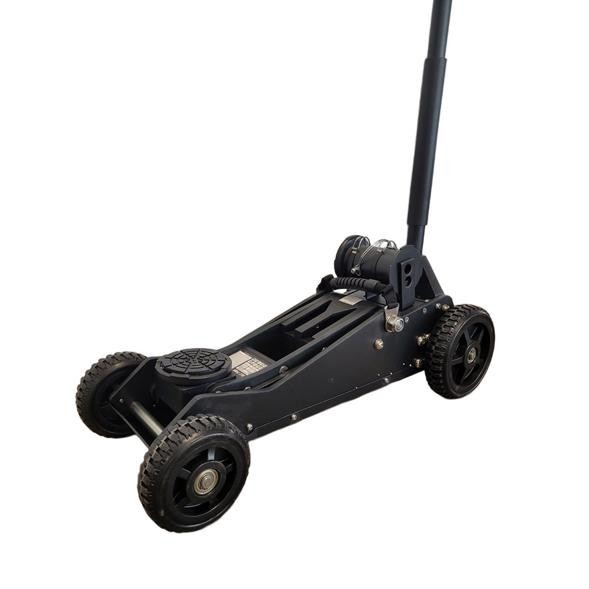 Offroad Wagenheber mit 3 Tonnen Tragkraft und Rangierreifen für unbefestigte Untergründe.