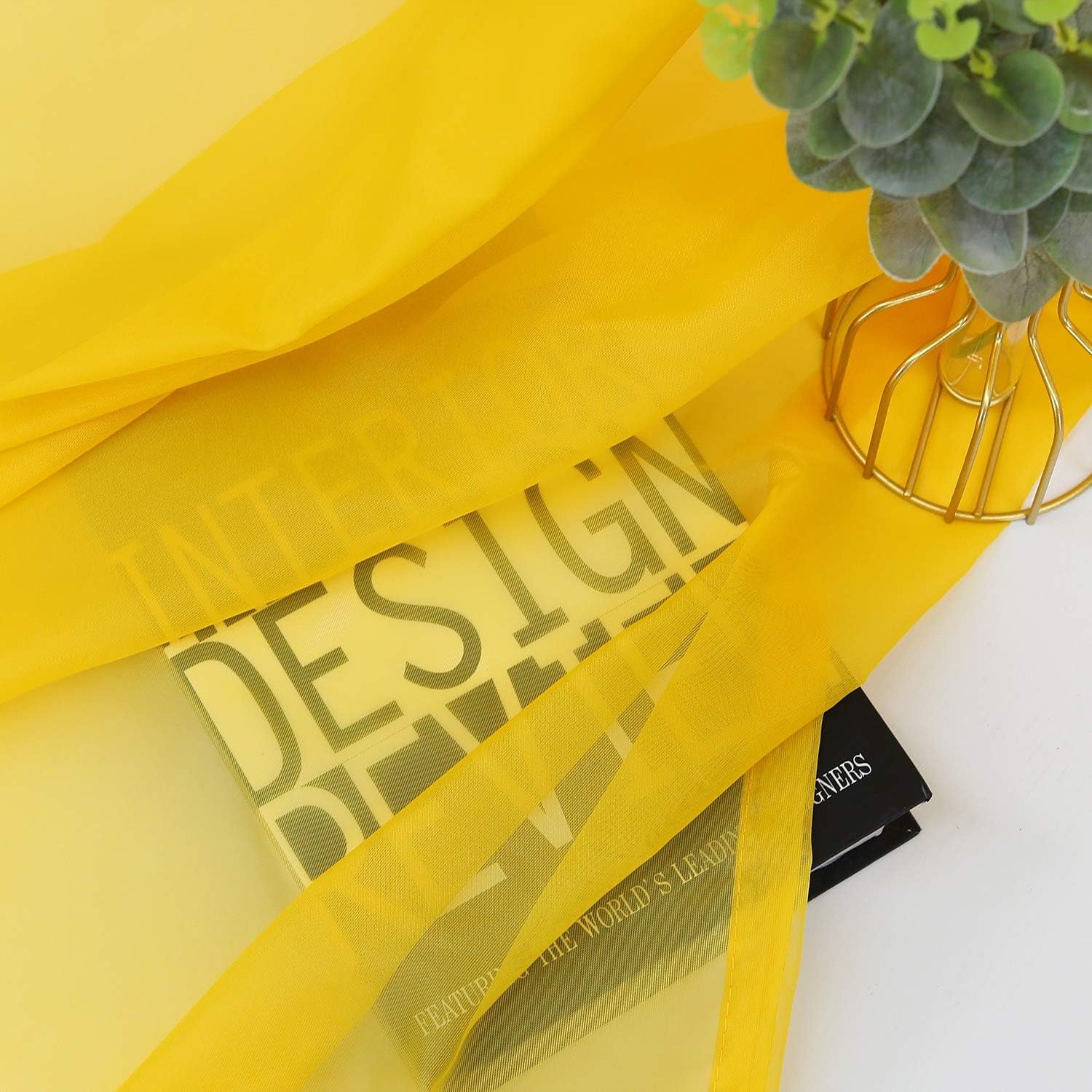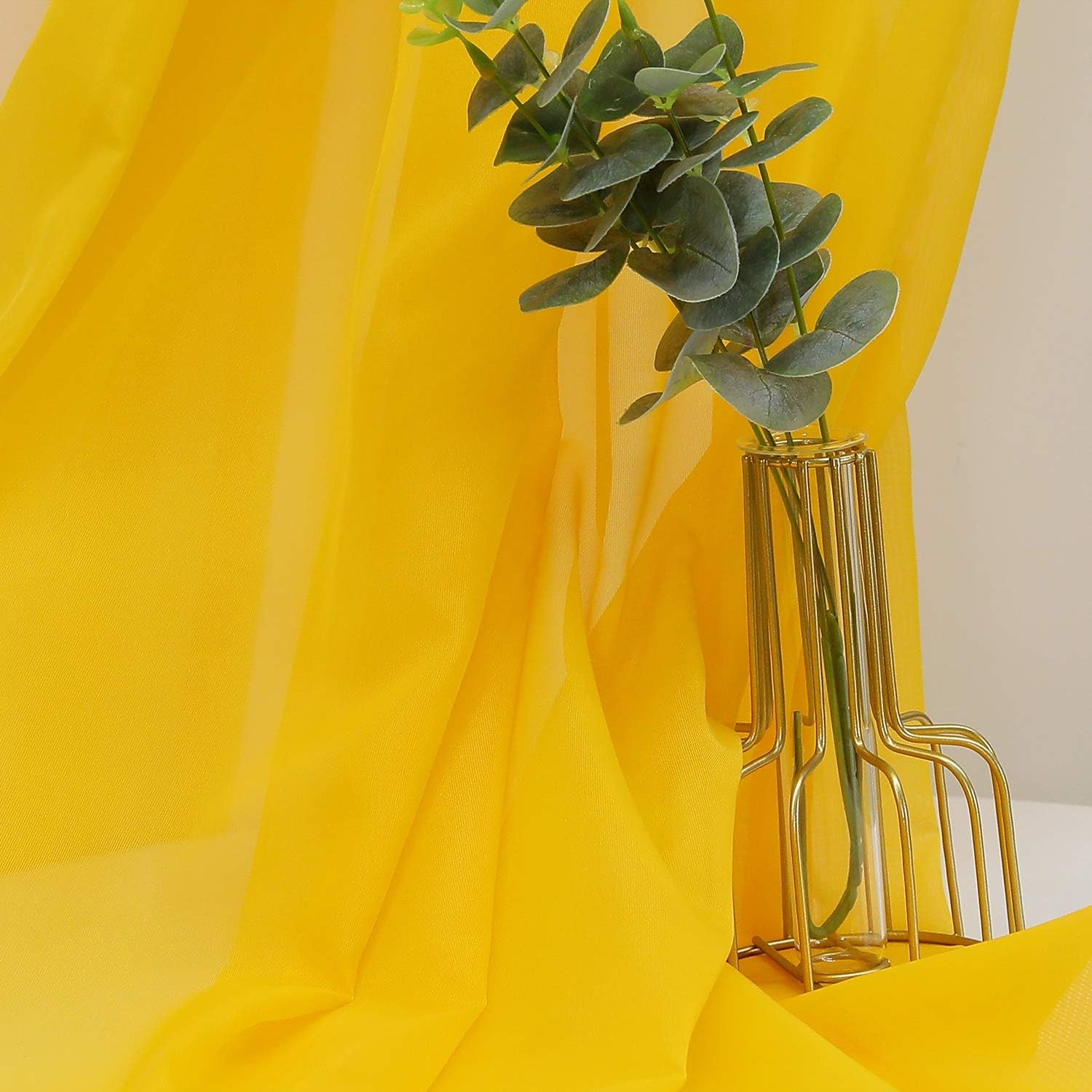Yujiao Mao Uni Farbe Voile Freihundbogen Schals Querbehang Deko Gardinen Sonnengelb BxL 140X300cm
