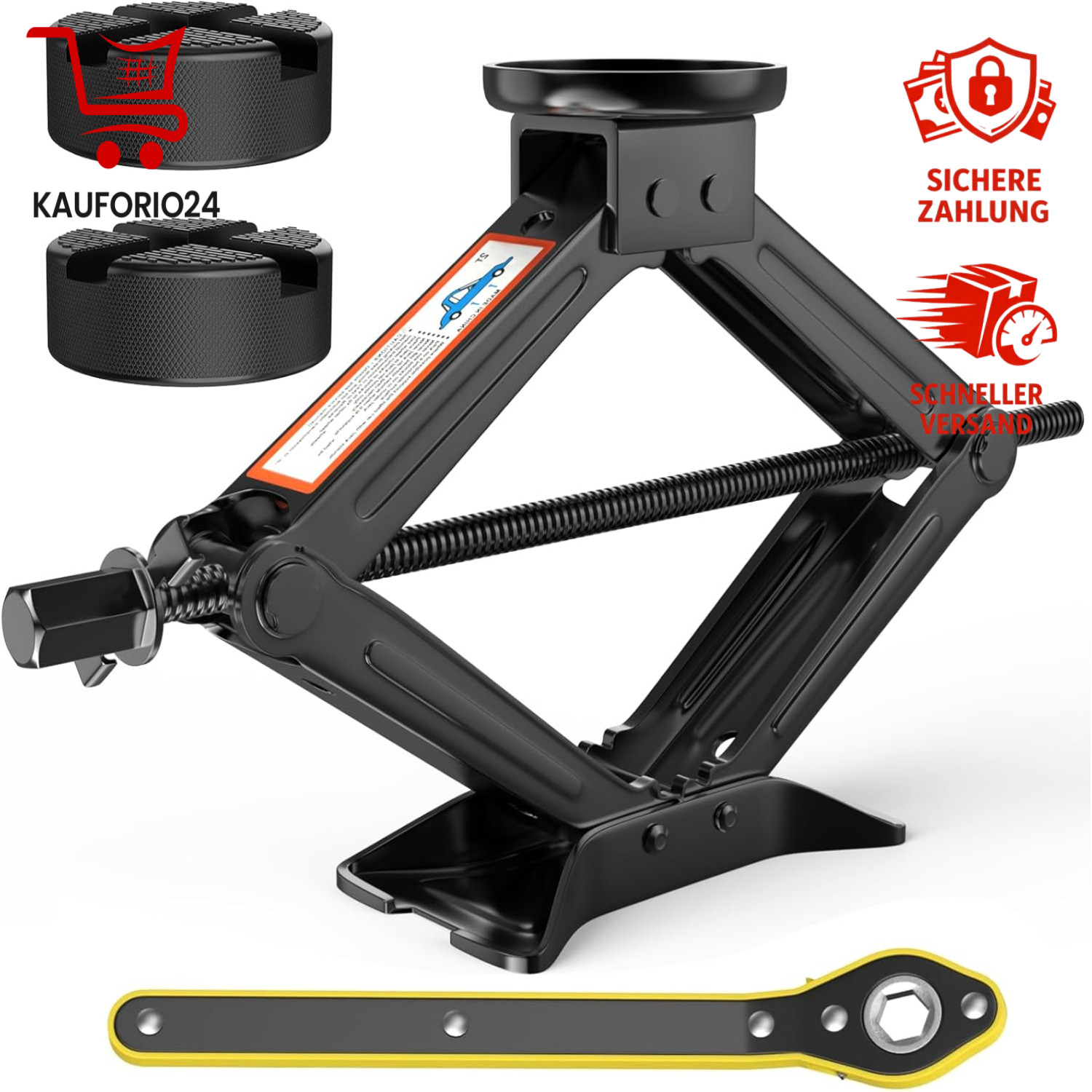 1x 2 Tonnen Scherenwagenheber 2x Gummiauflage 1x Ratsche 1x Hundschuhe