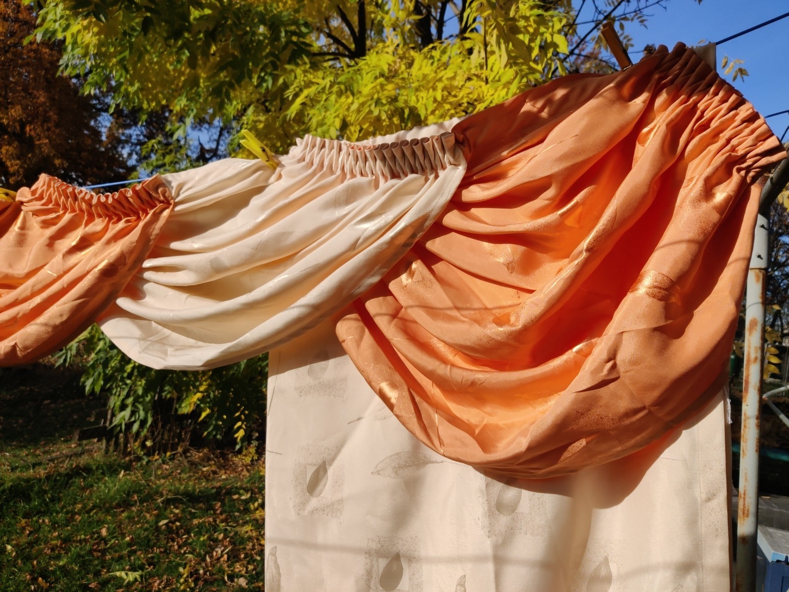 1 gebogten Querbehang (Schabracke) in Beige und Aprikot (bzw. helles Terracotta)