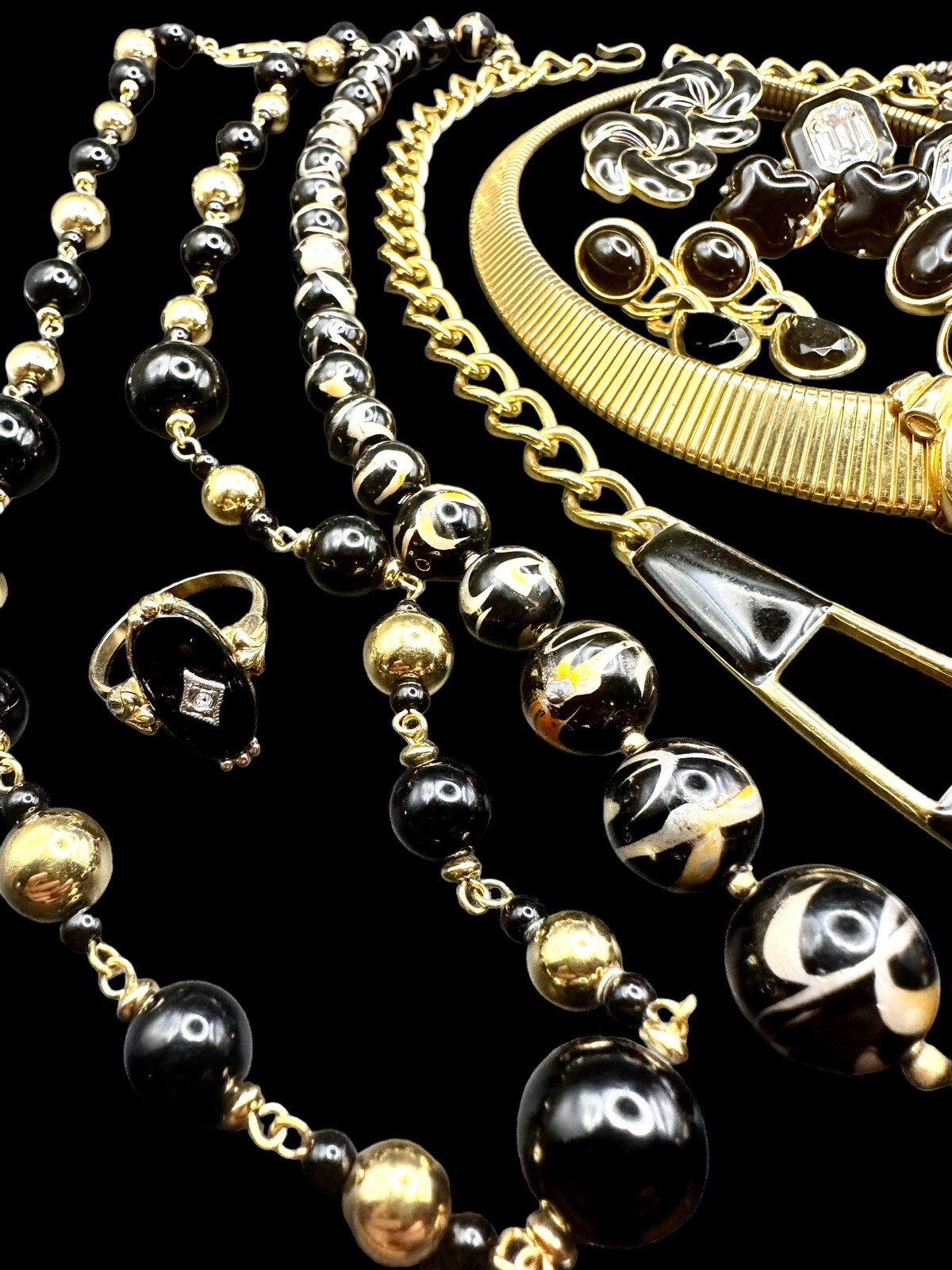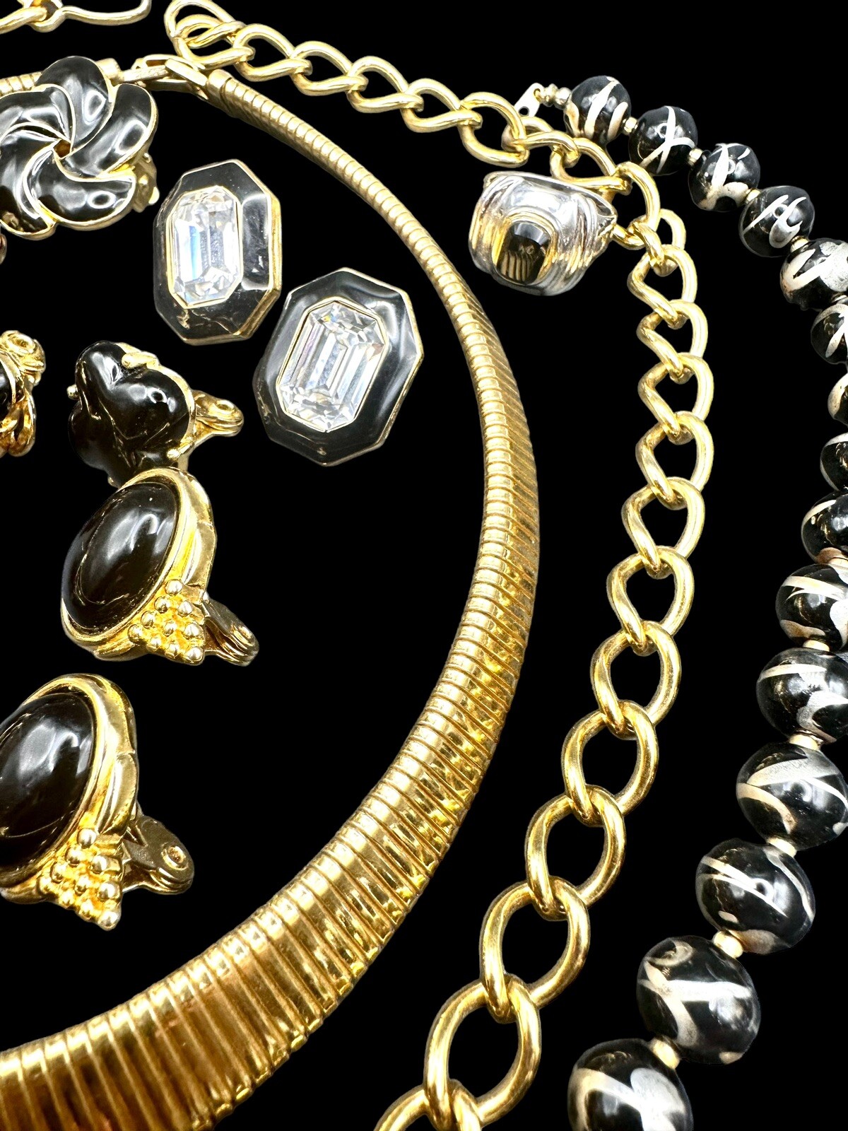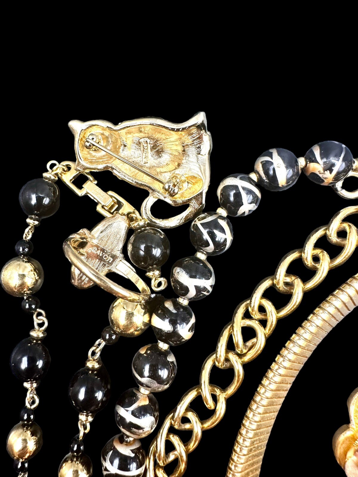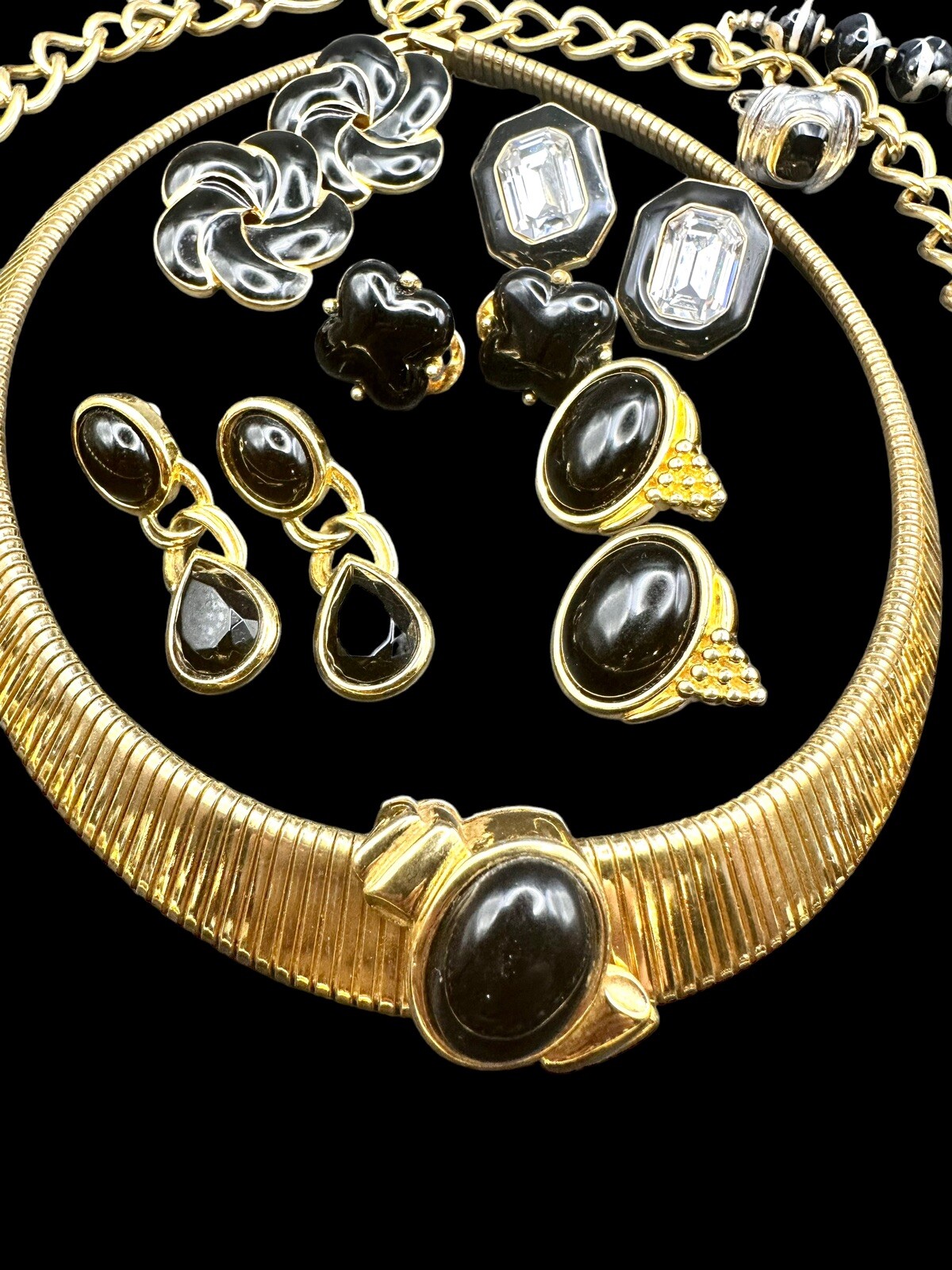 Vtg Black & Gold Jewelry Enamel Rhinestone Lot Monet Trifari Napier Etc 14 Pc