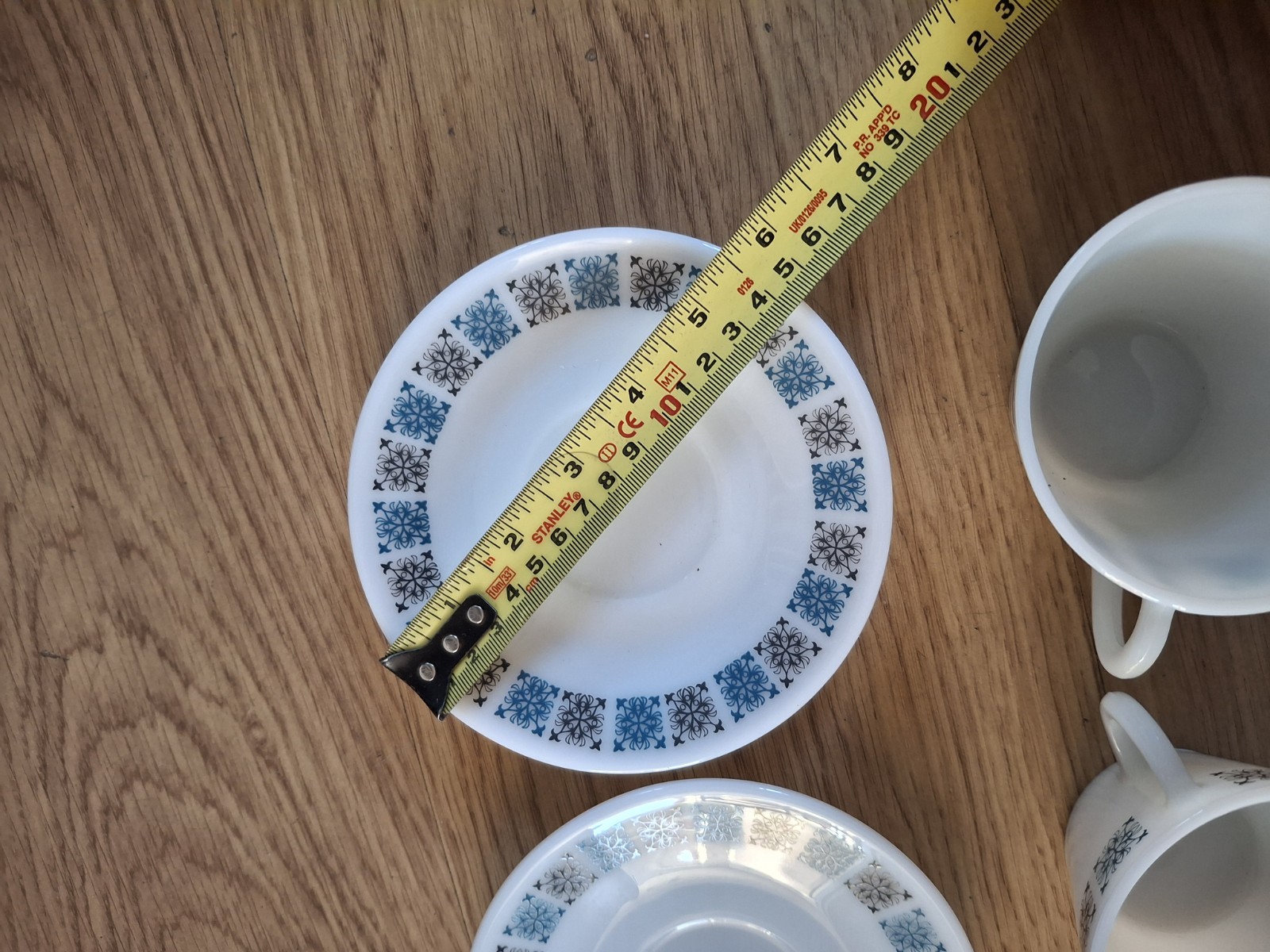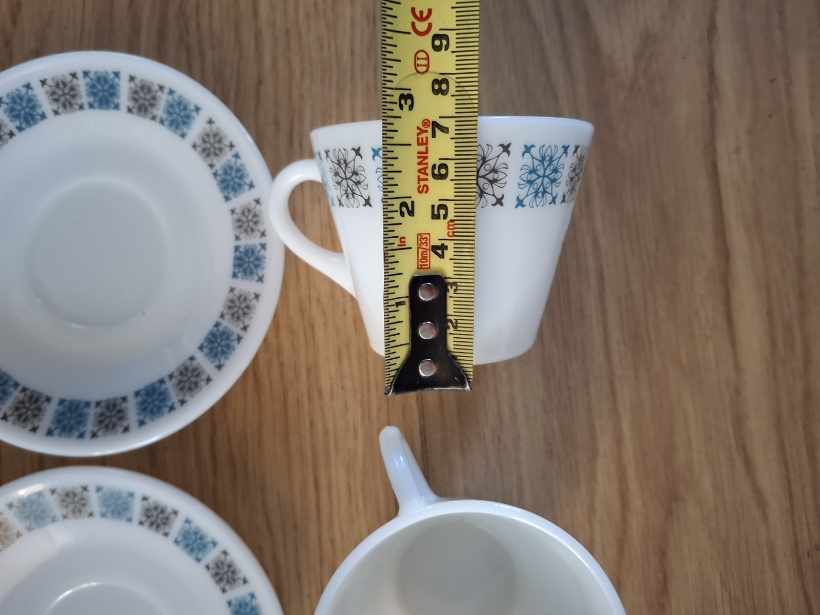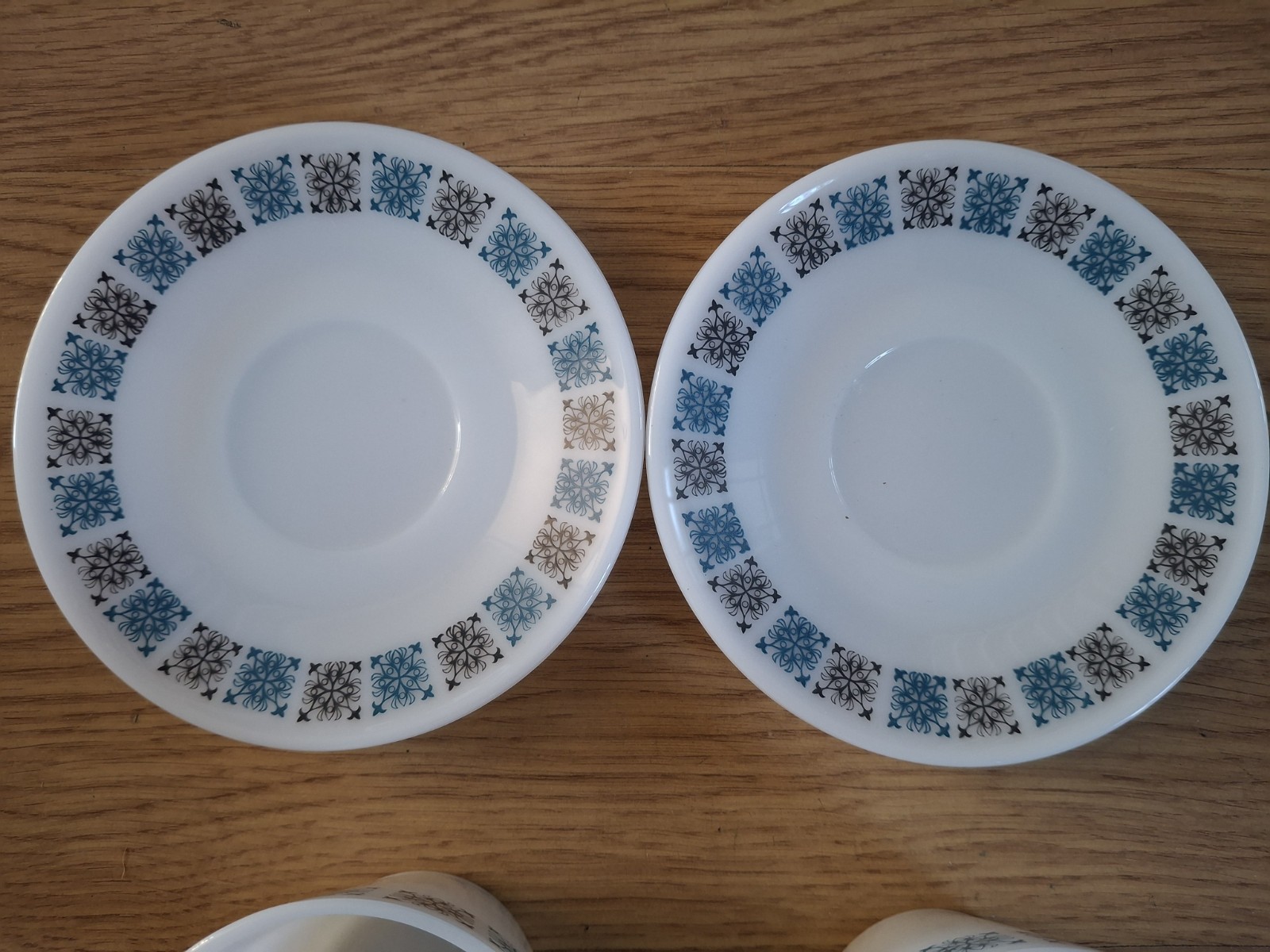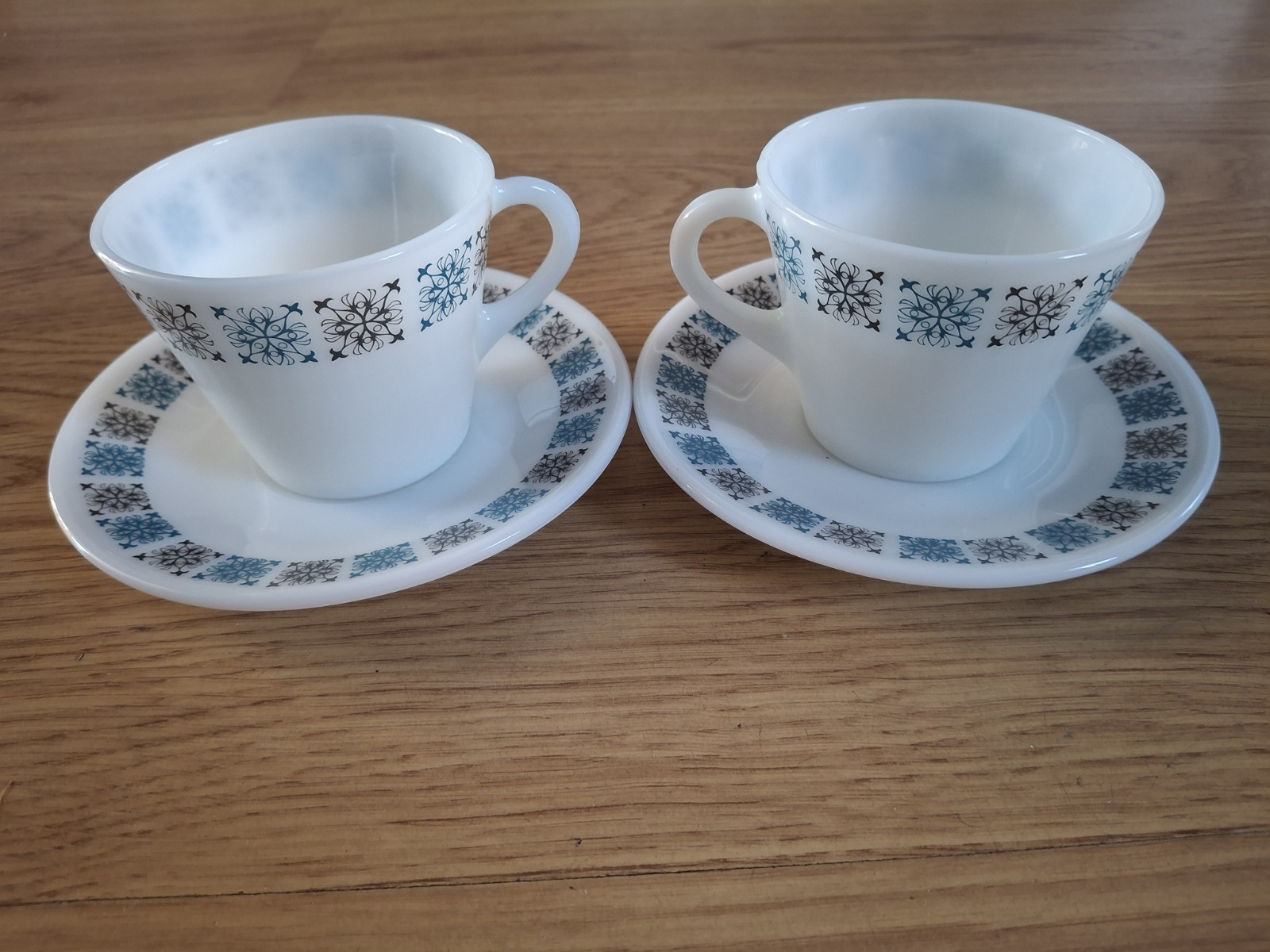 Vintage Jaj Pyrex Chelsea Pattern x2 Tea Cups & x2 Saucers (LL)