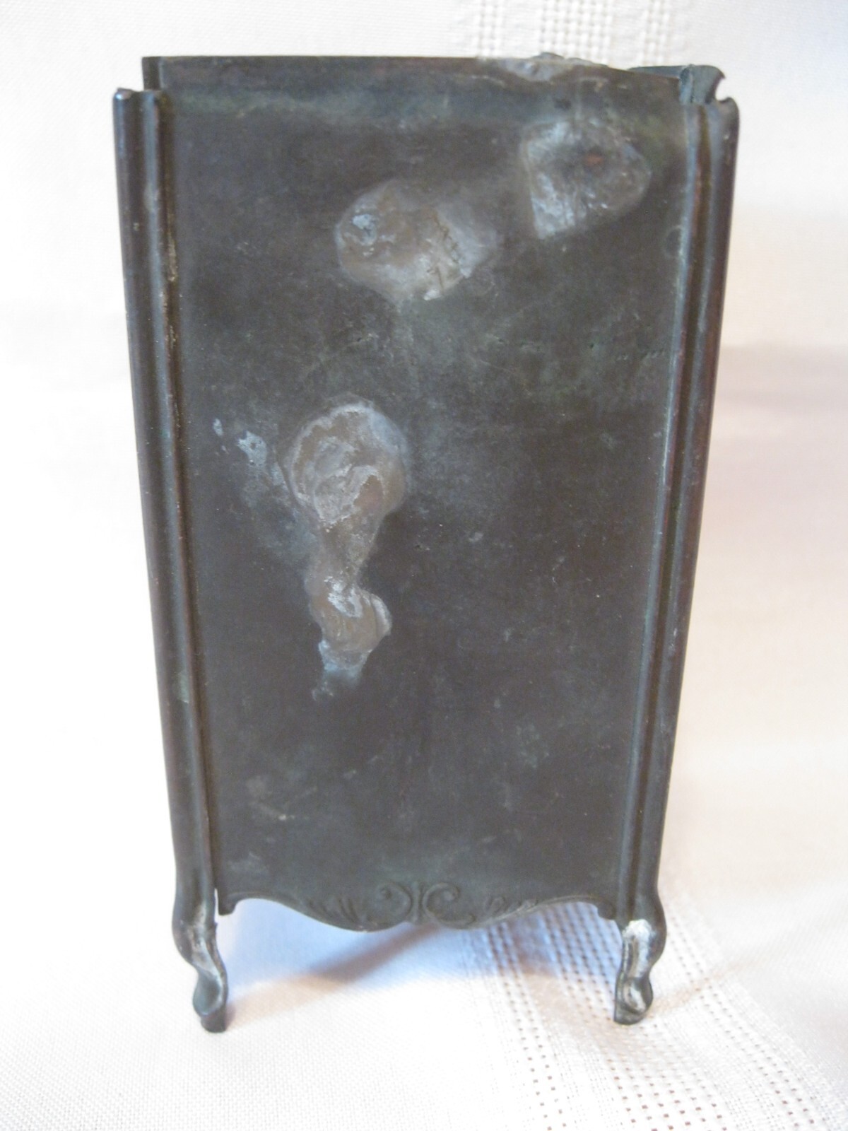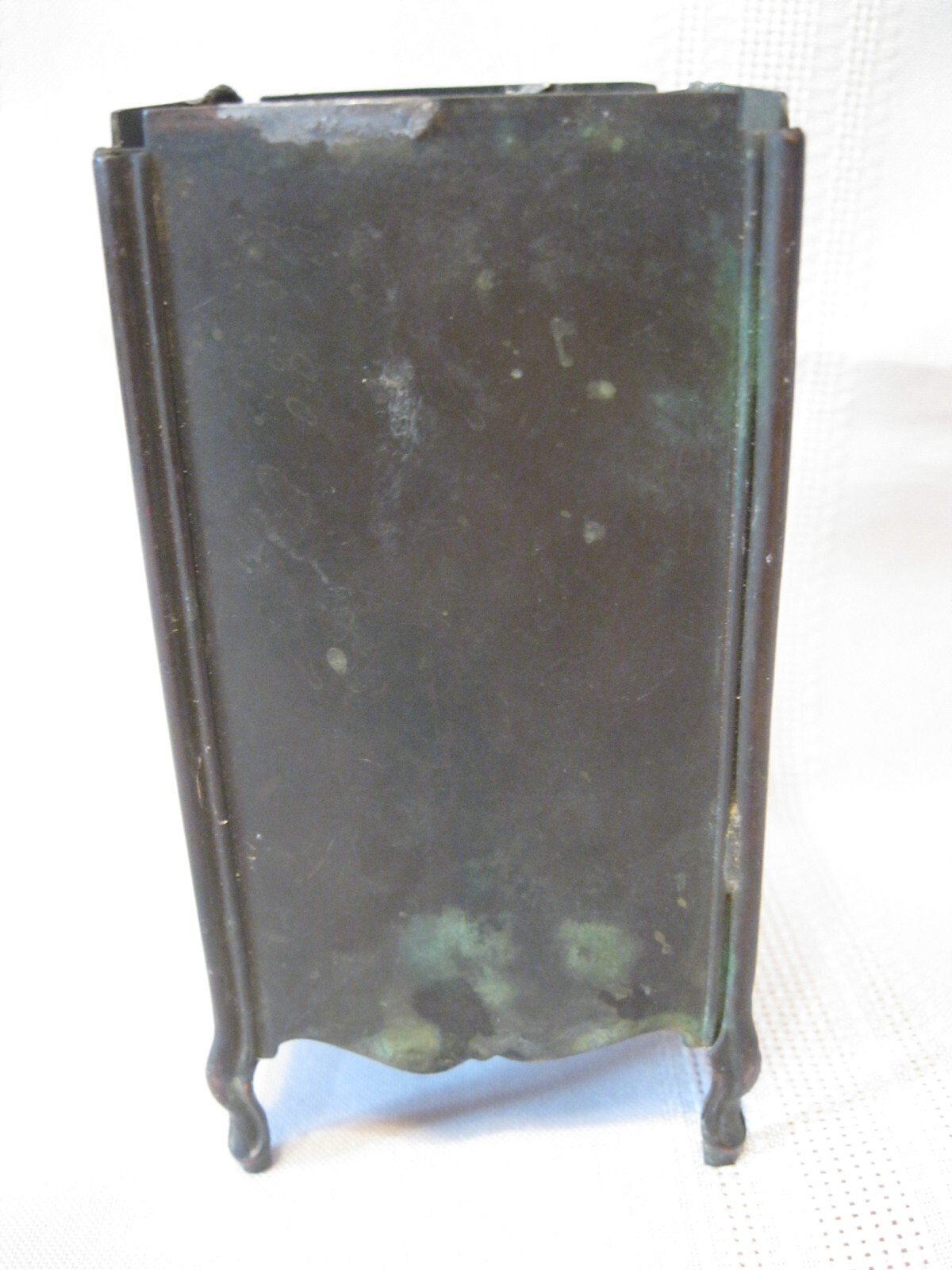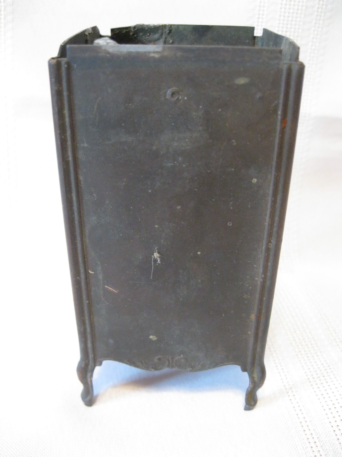 Heavy metal savings bank advertising Brunswick Phonograph. Top is missing but advertising on front is legible. Some corroding and splotches. Rust on bottom. Sold as is. Front of item displays well. Please look at all photos.
