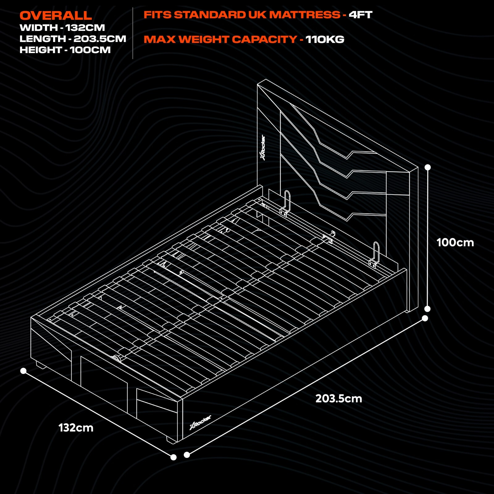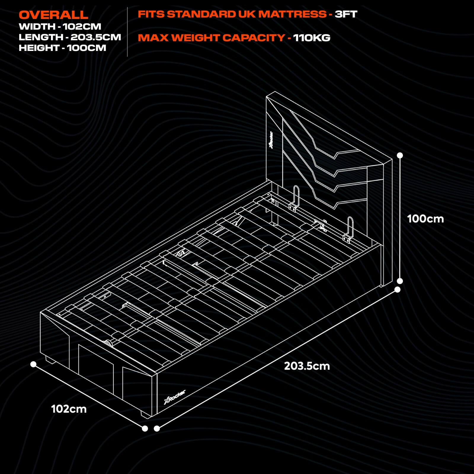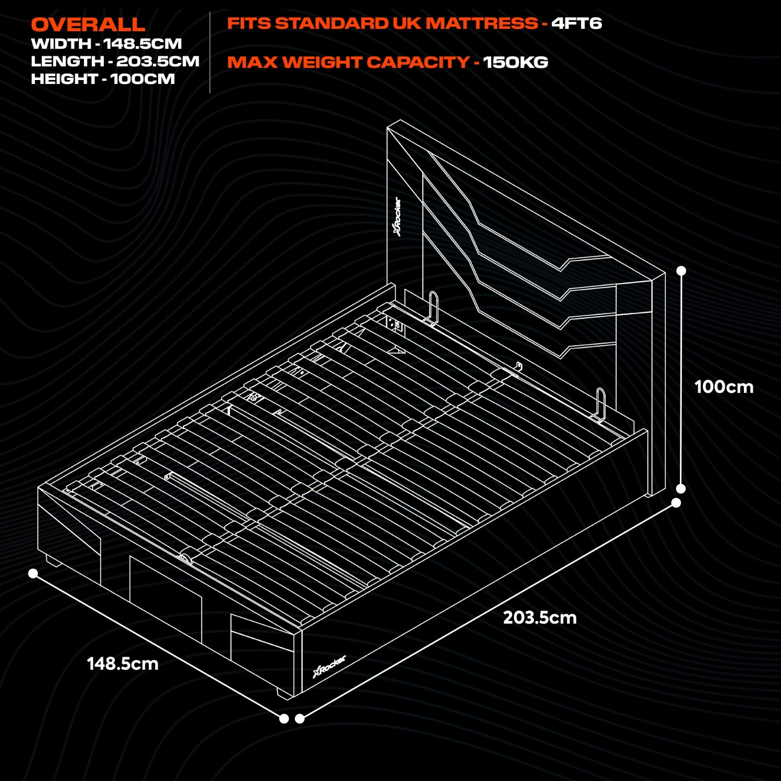 X ROCKER Cerberus MKII Ottoman Bed Frame Gaming Faux Leather 3ft 4ft 4ft6 BLUE