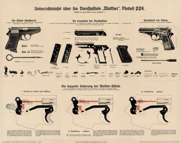 *BIG* German WW2 Walther PPK Color Poster Vintage Artwork 007 Manual LQQK & Buy!