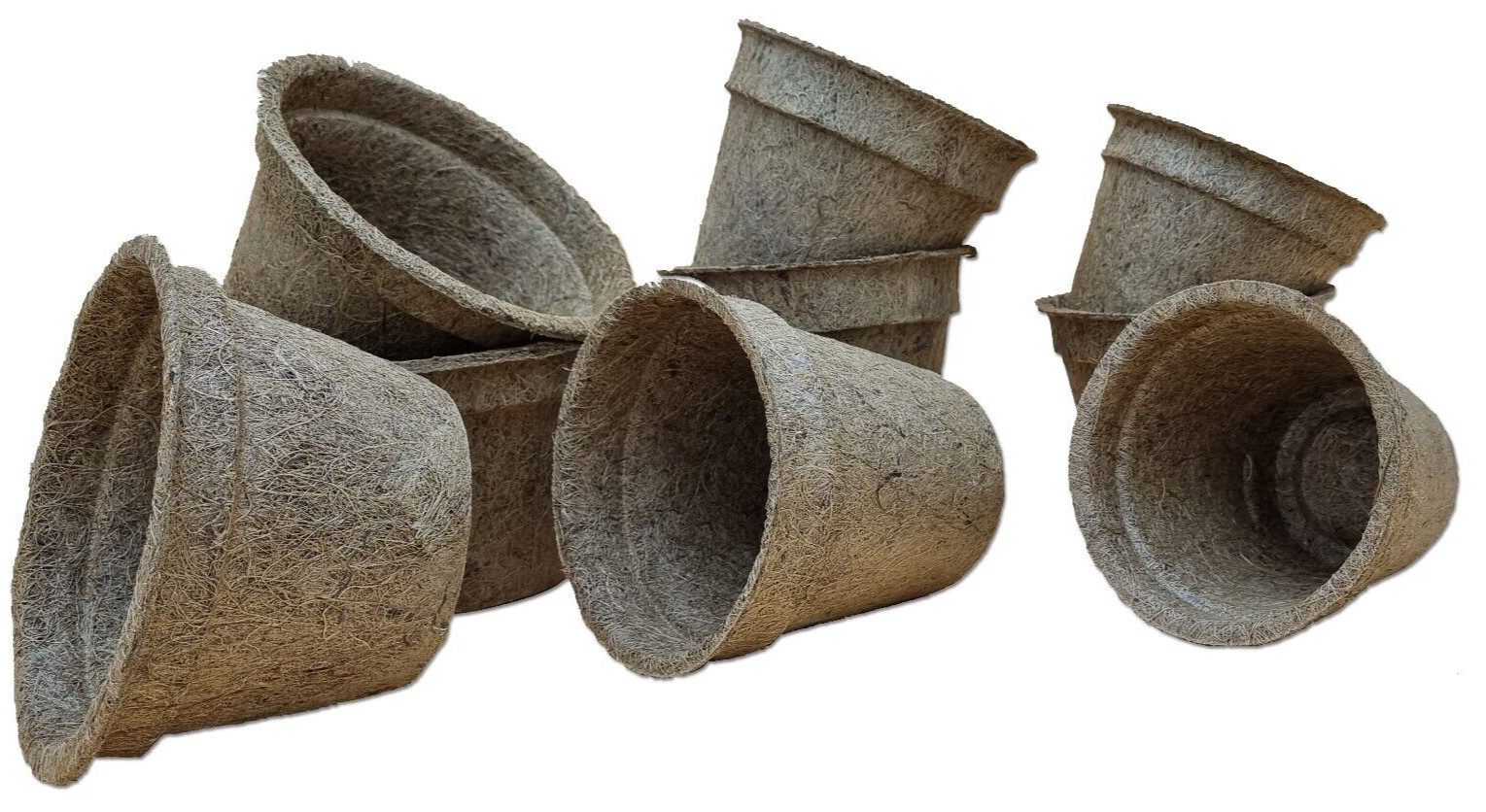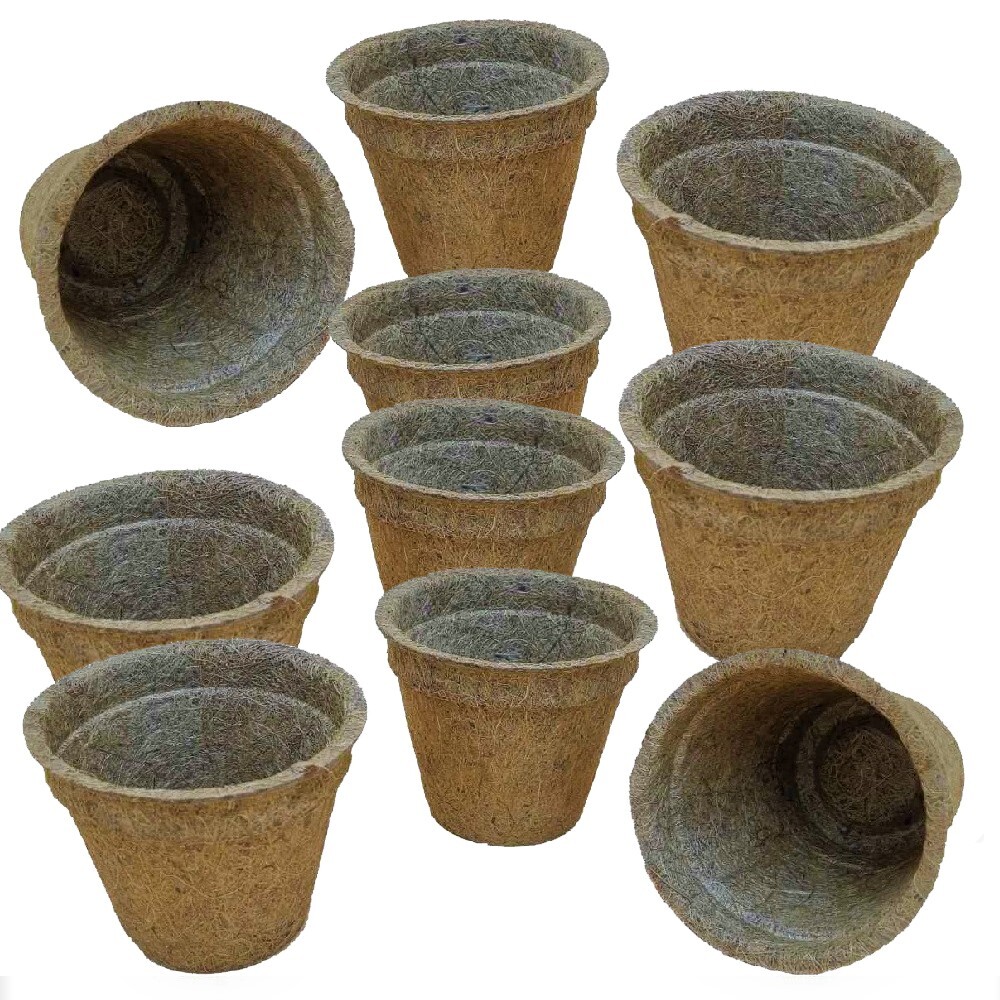 Introducing e-pots Coir Fibre Plant Pots, a set of ten small round flower pots made of natural coir fibre material and natural latex. 100% Eco-Friendly alternative to plastic plant pots.