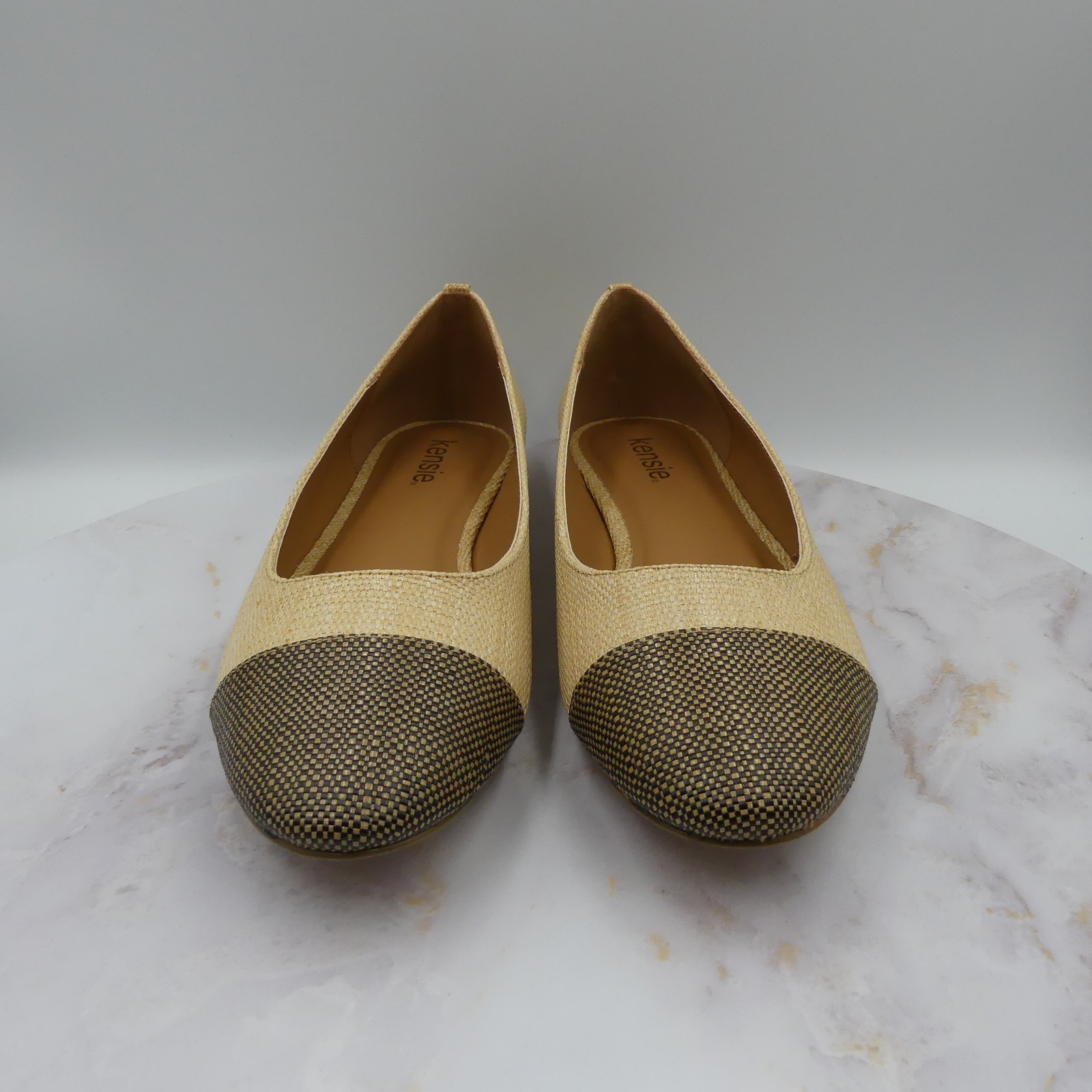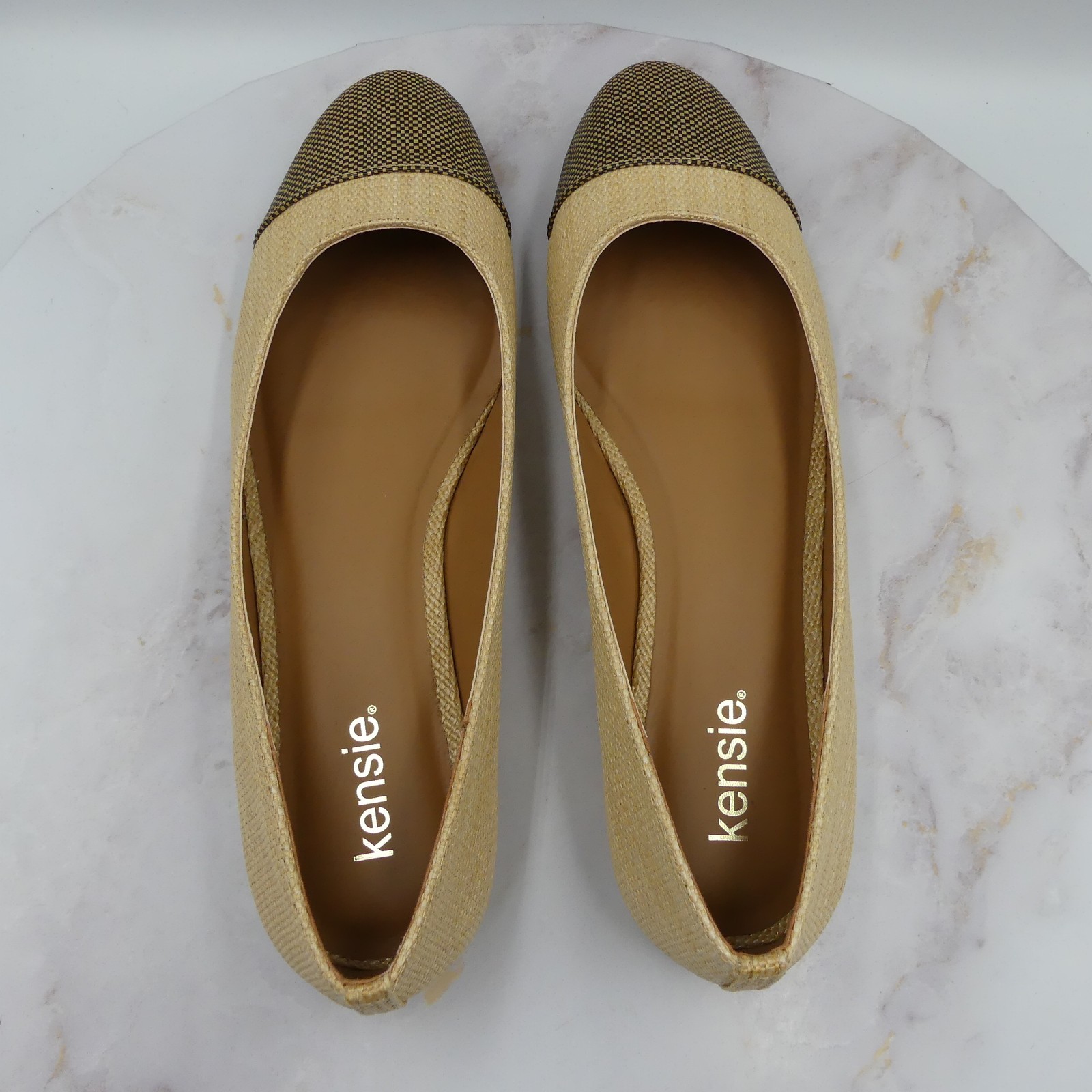 Kensie Shoes Womens Size 11M Natural Allie Ballet Flats Cap Toe Textured Slip On