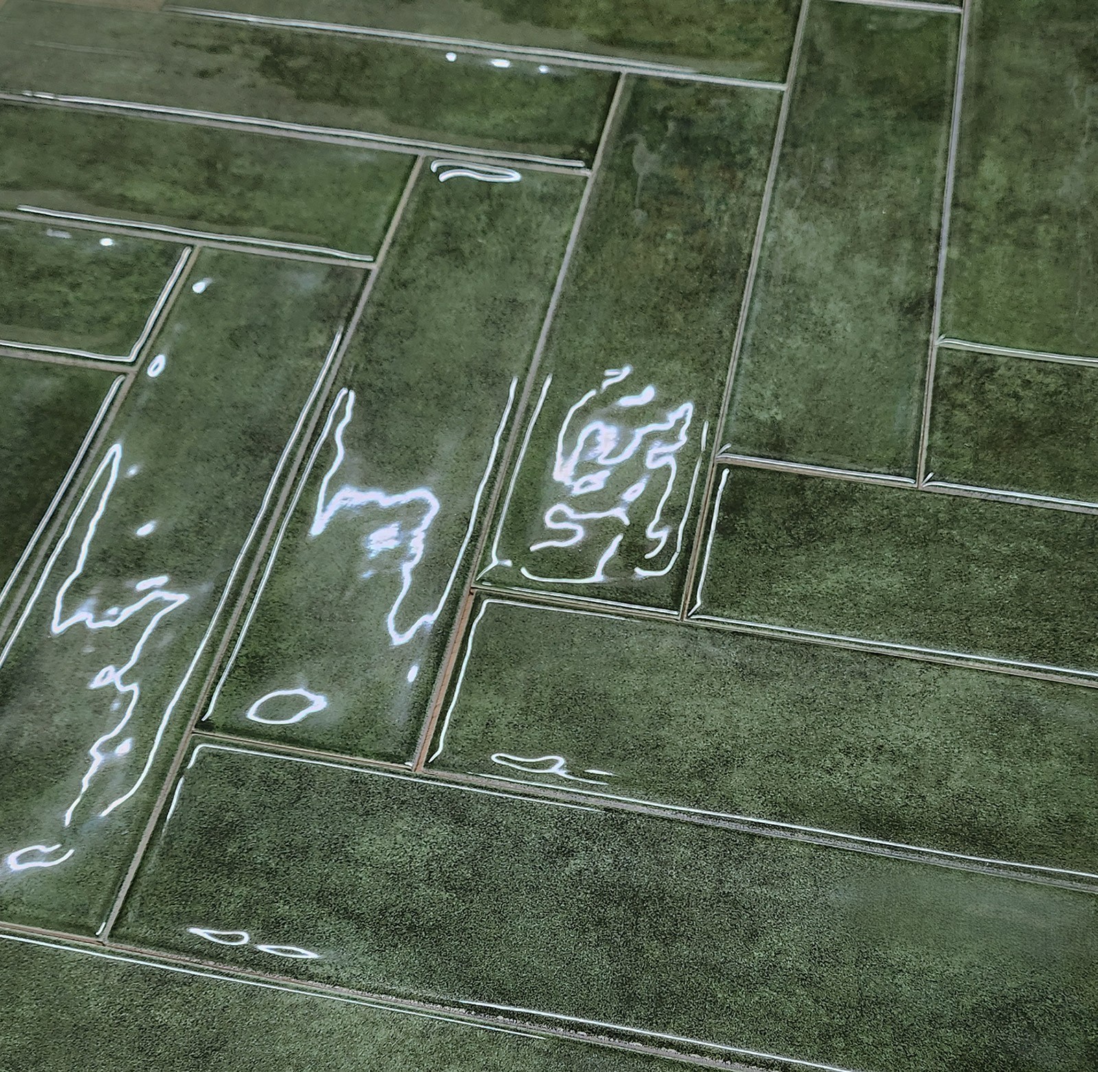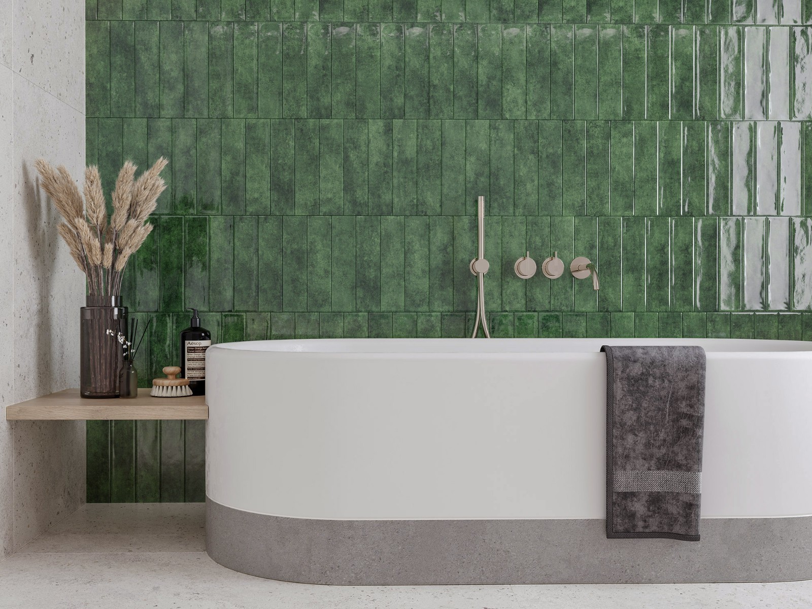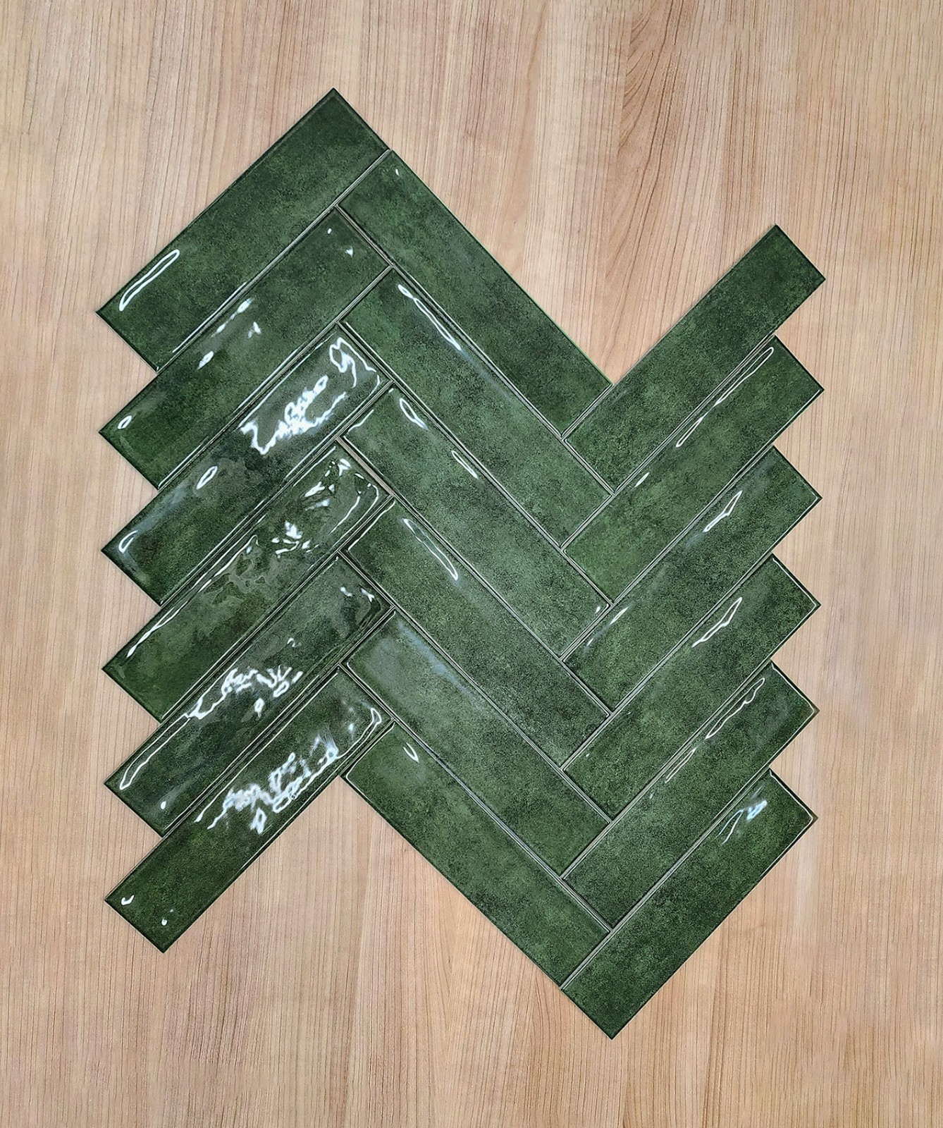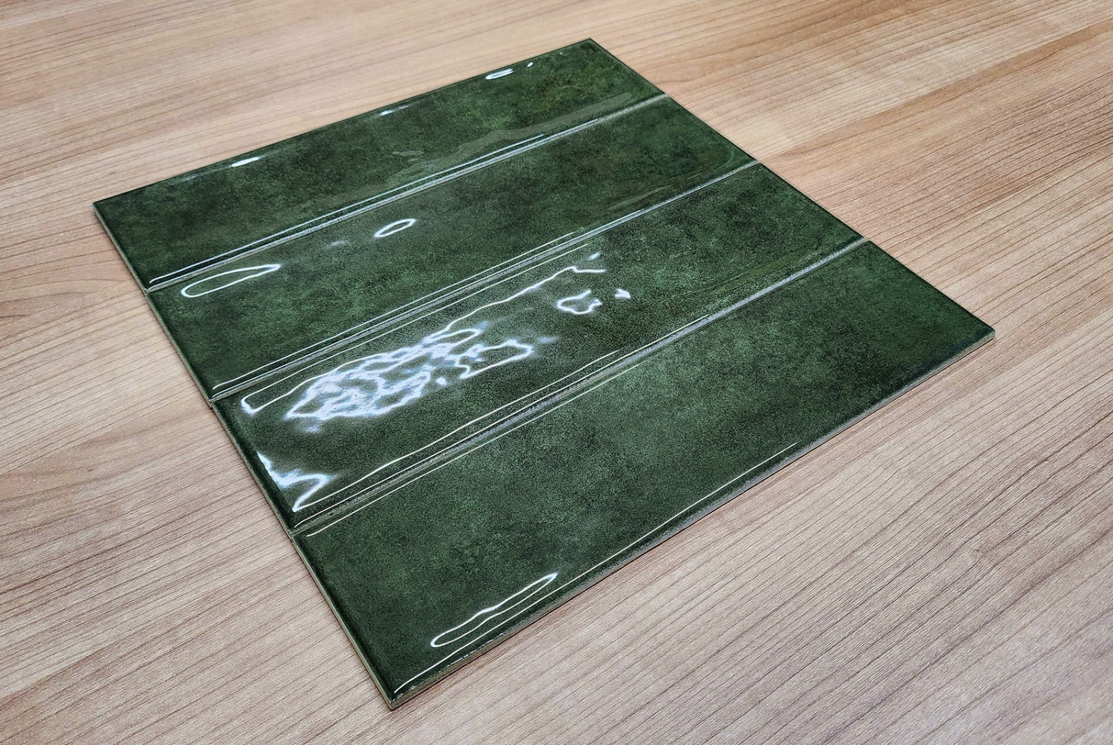 Subway Brick Flat Green Metro Tile - 7.5x30cm Wall Tile gloss - Sample