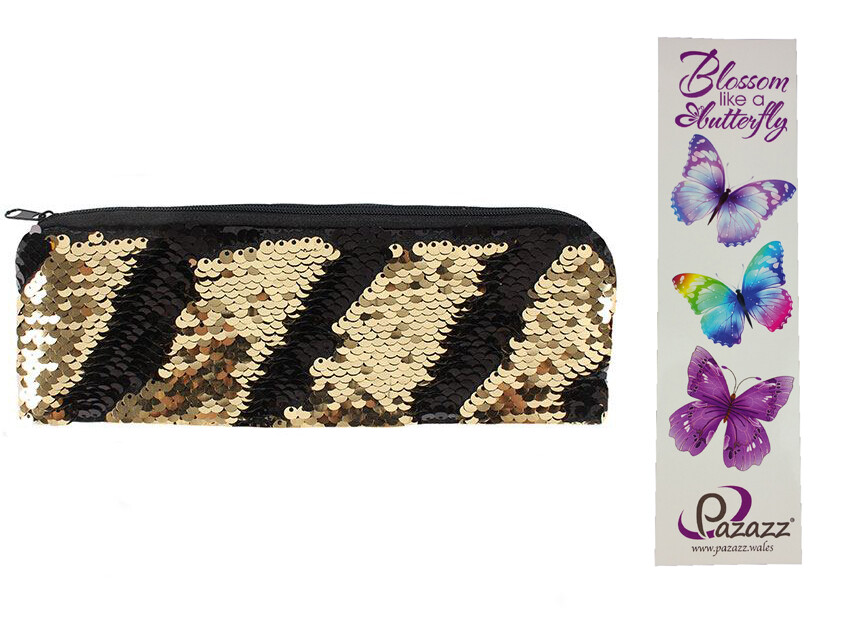 This reversible sequin pencil case/Make up bag provides a glam way to store pens and pencils or makeup