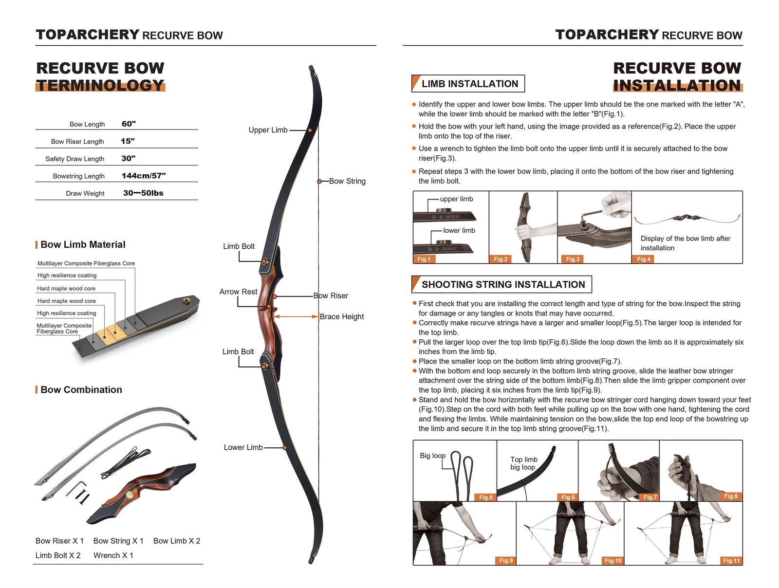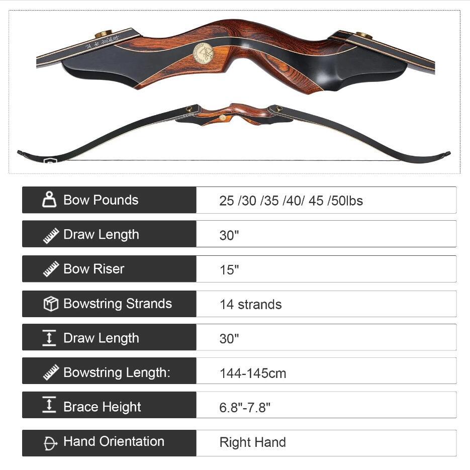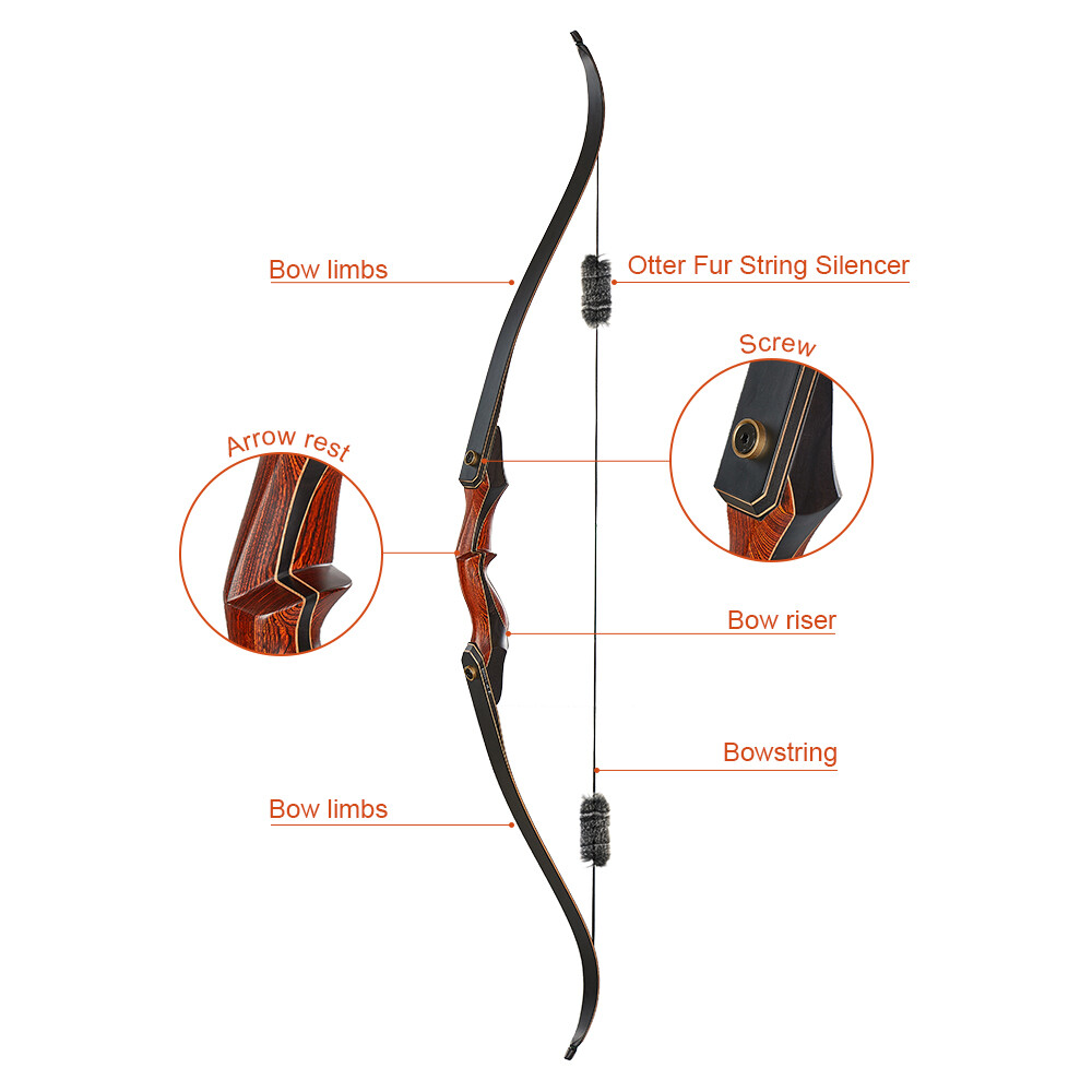 TOPARCHERY 60" Archery Takedown Recurve Bow Wood Riser Hunting Target Practice